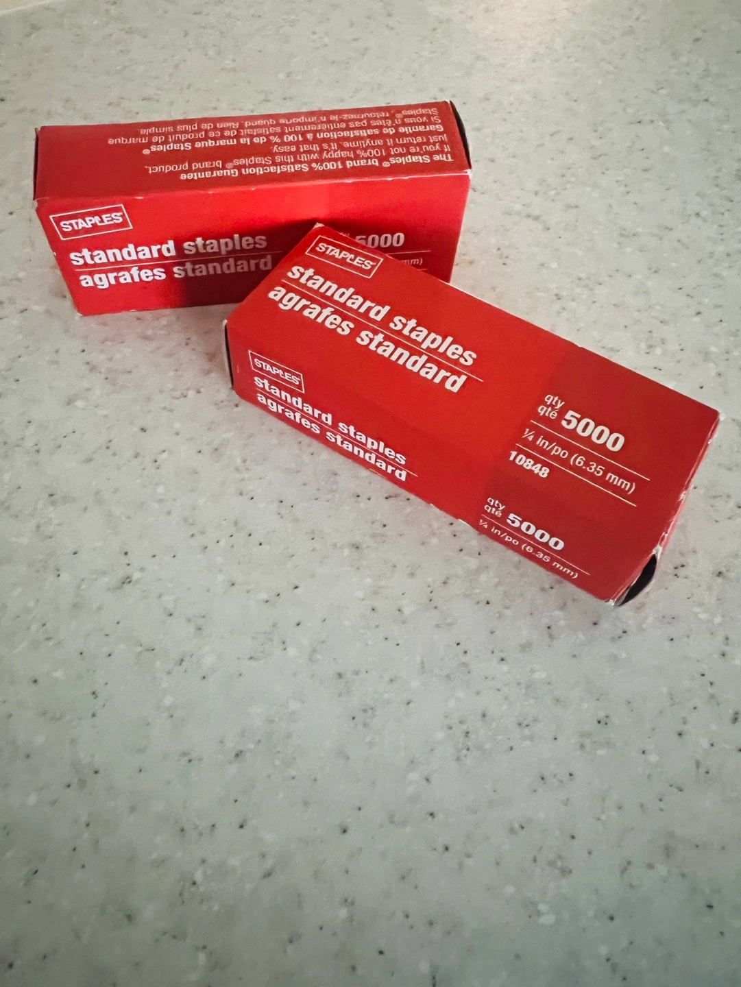5000 standard staples, 1/2 inch in size. Package may have minor wear.