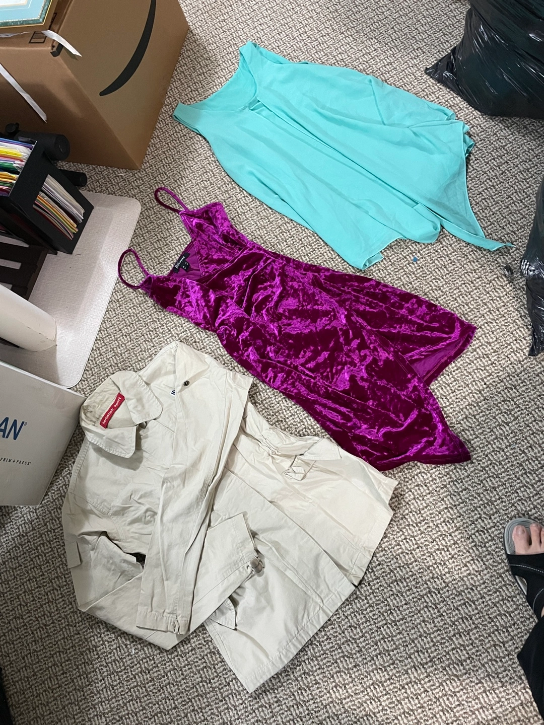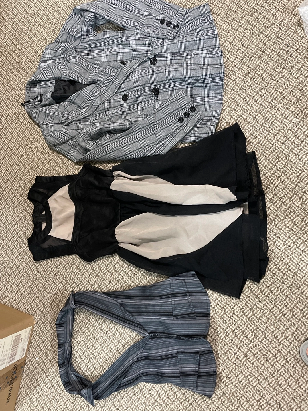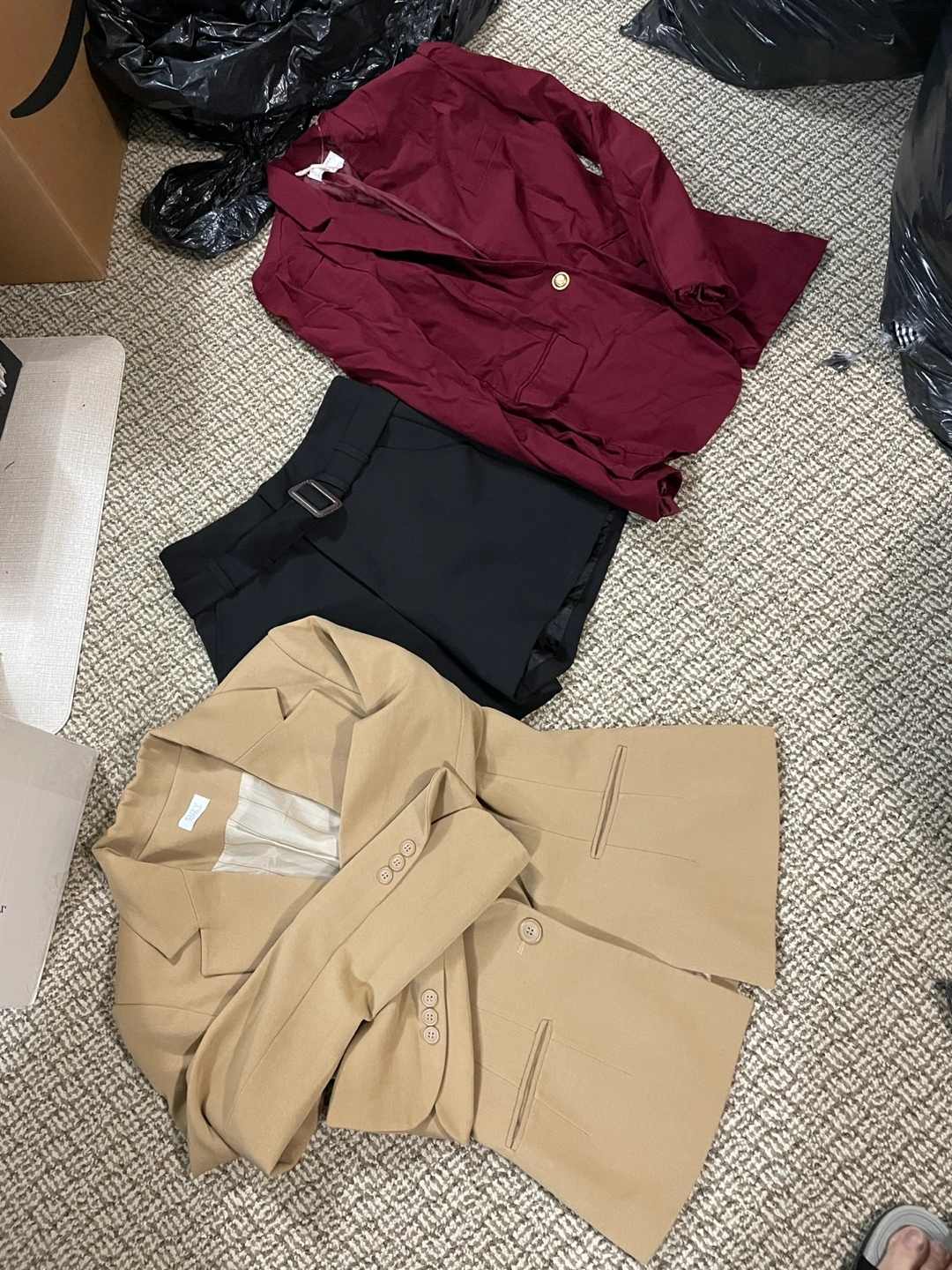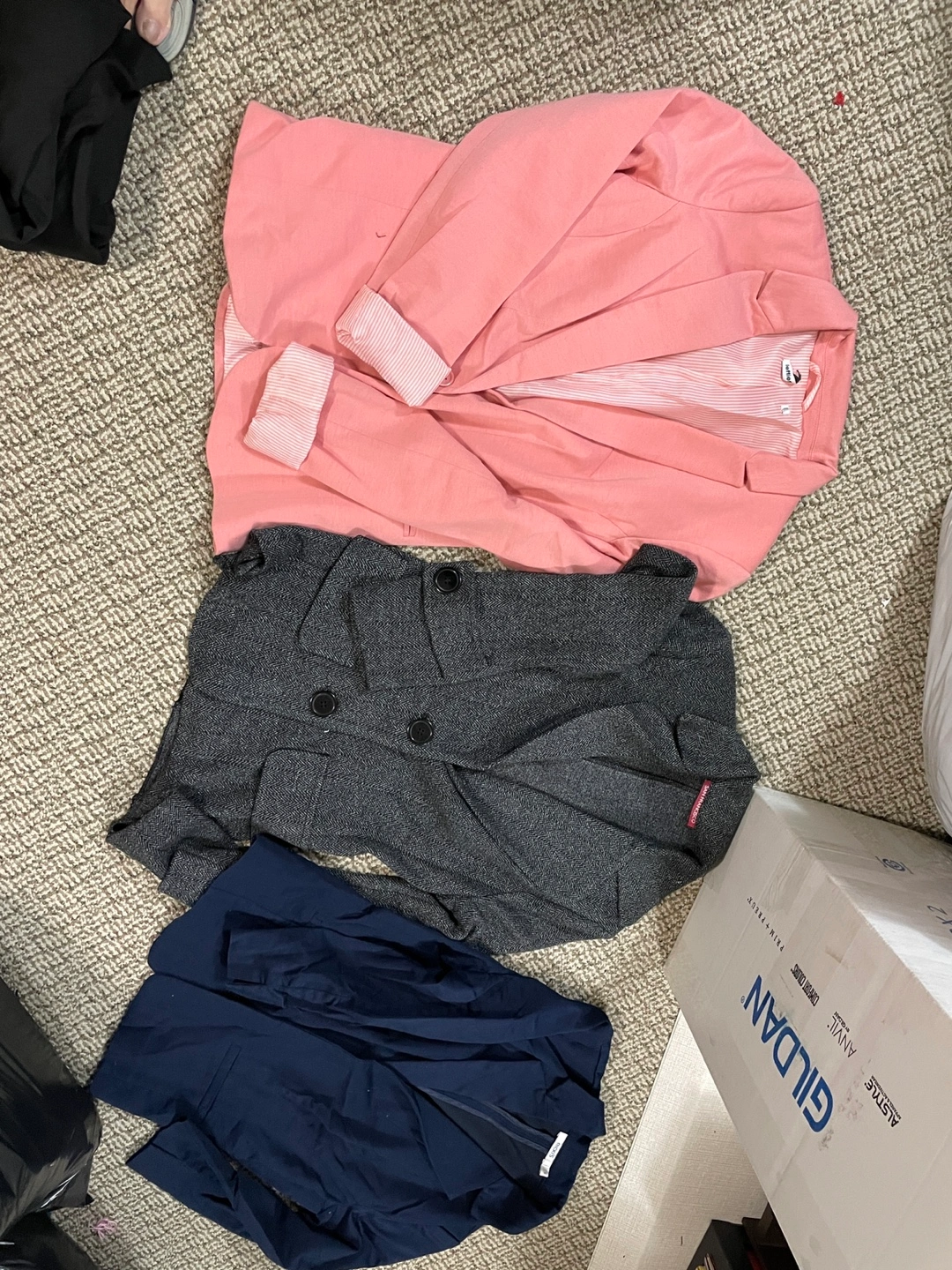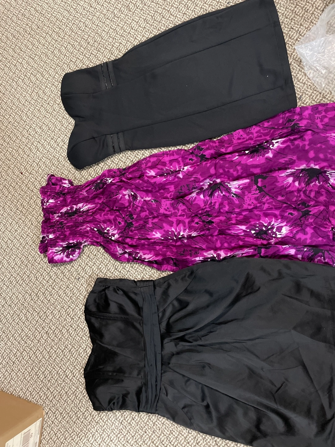 Bundle of women's clothing, including dresses, tops, jackets, coats, and shorts. All in good condition. A lot more items to post. Available until Dec 15 only. First come first serve. $2 each, $18 for 10.