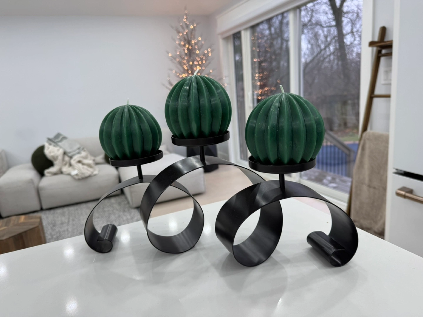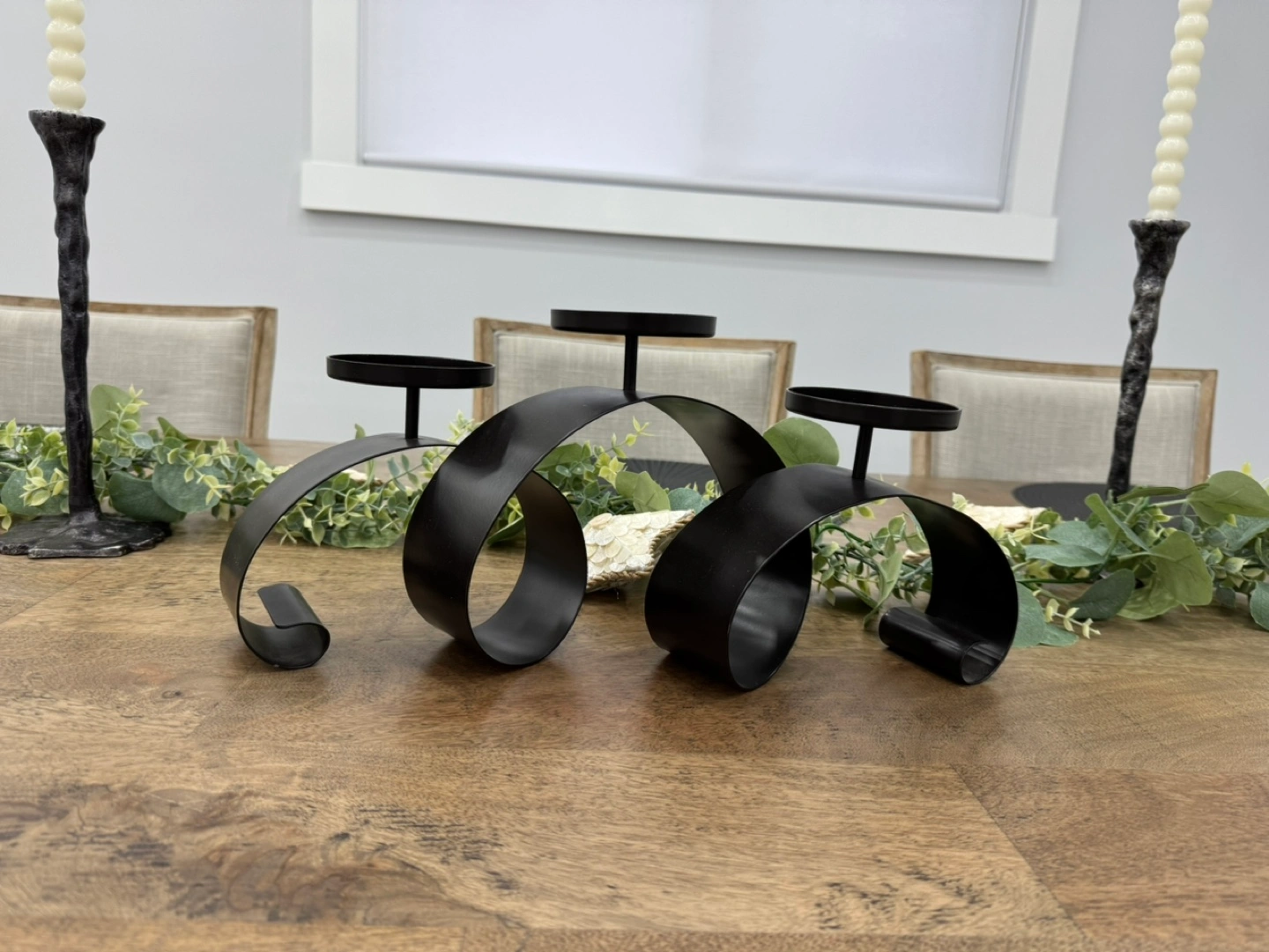 black metal candle holders. Perfect for a modern or farmhouse style decor.