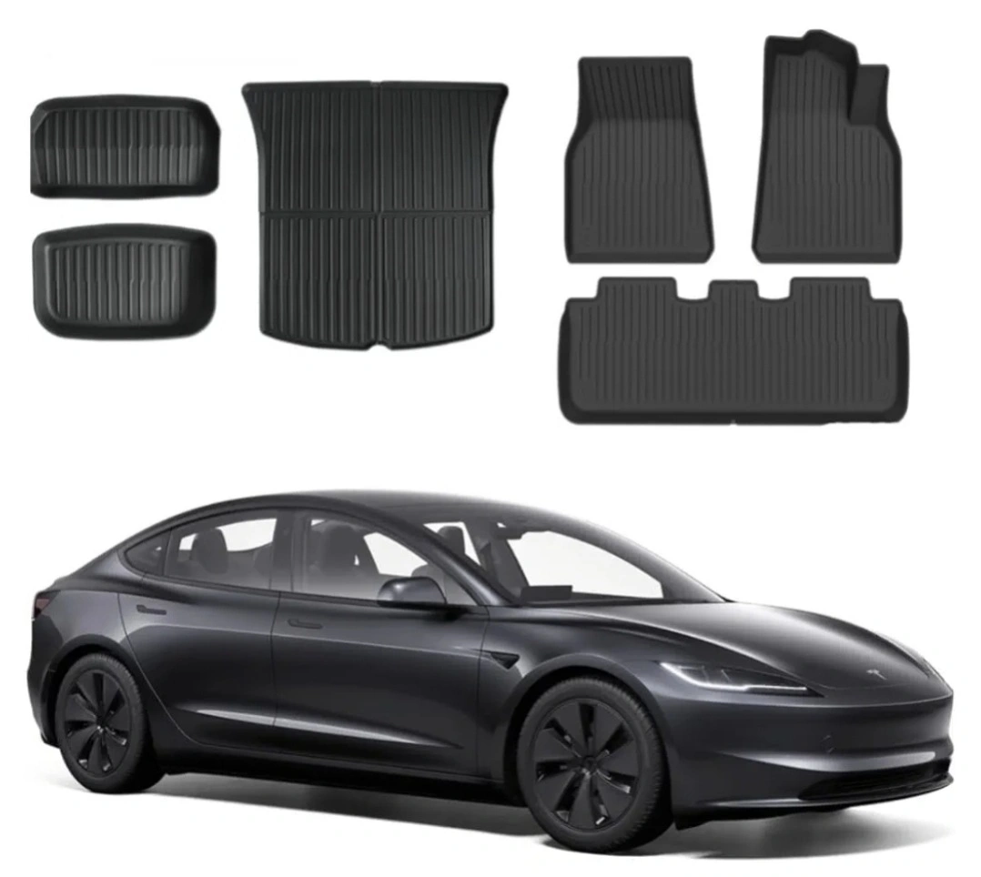 BNIB Brand New In Box Full Set (6 Piece) Custom All Weather Mats Includes: Driver and Passenger Side, Second Row, Front Trunk, Rear Trunk and Rear Well Mats Fits Tesla Model 3 Scratch Resistant Surface Laser cut to provide a perfect edge-to-edge fit for the exact floor plan and footwell areas of your vehicle 3 Layer Design: TPR surface layer is waterproof, the middle XPE foam reduces noise and enhance foot comfort, the anti-skid backing provides precise positioning Environmentally Friendly Material Odorless, Durable and Easy to Clean ***Please Check Out My Other Ads