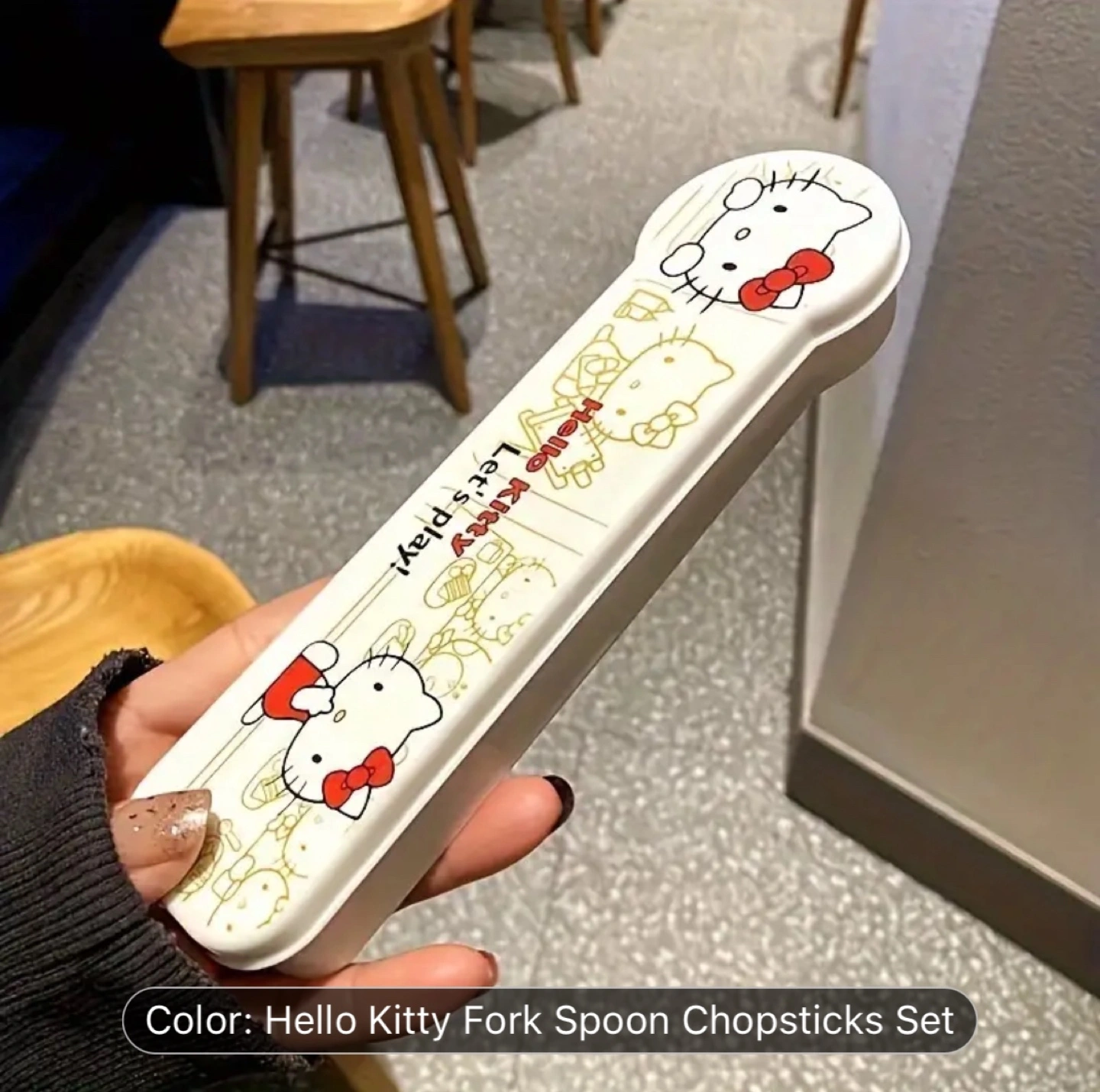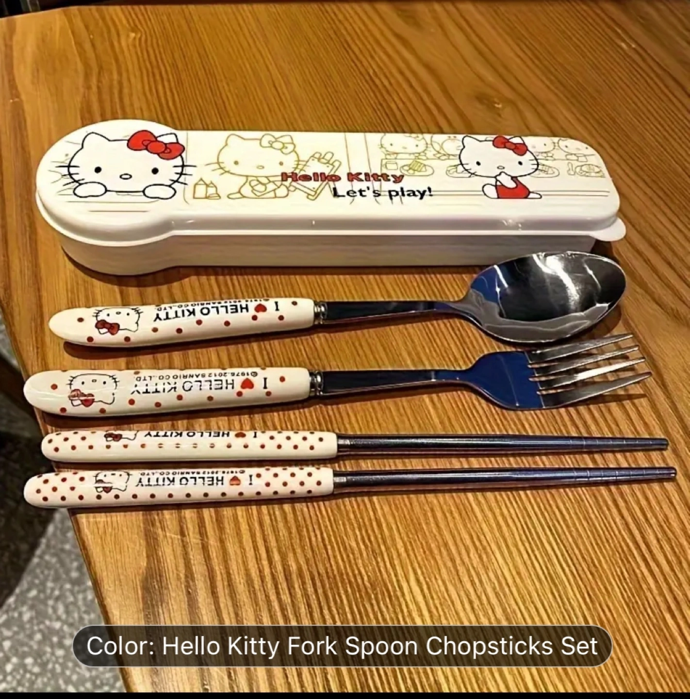 Hello Kitty Portable cutlery set ๐ธ Metal Fork, spoon and chopsticks ๐ธ With Plastic case ๐ธ Super cute in actual ๐ธ Perfect for home / office /school