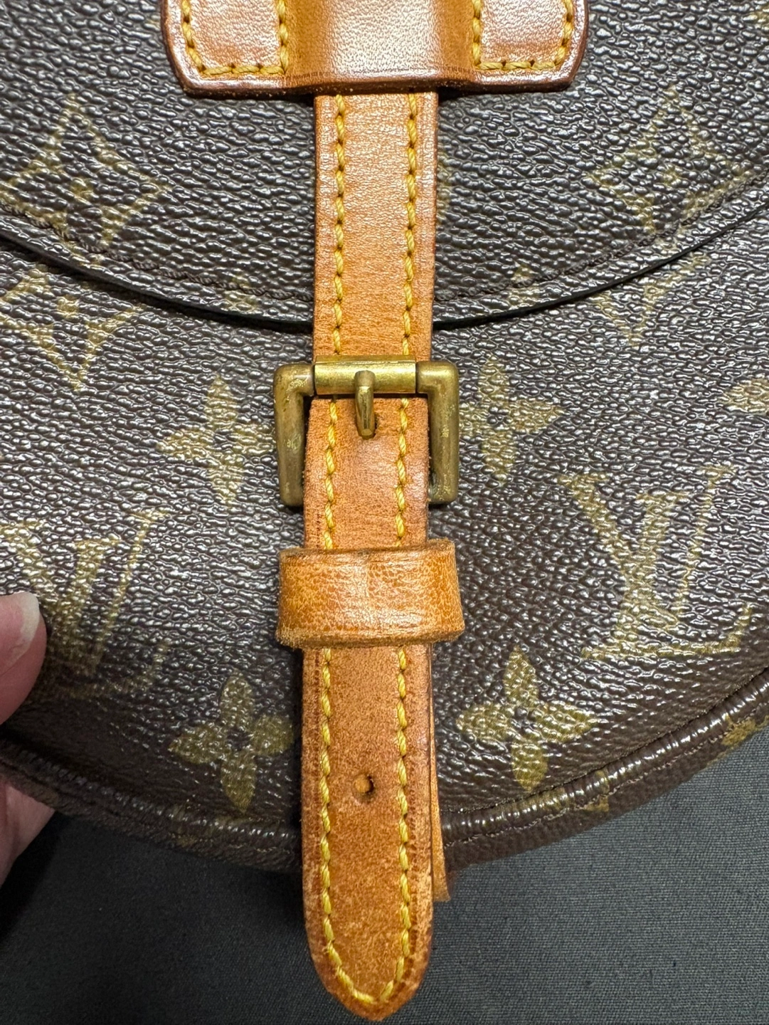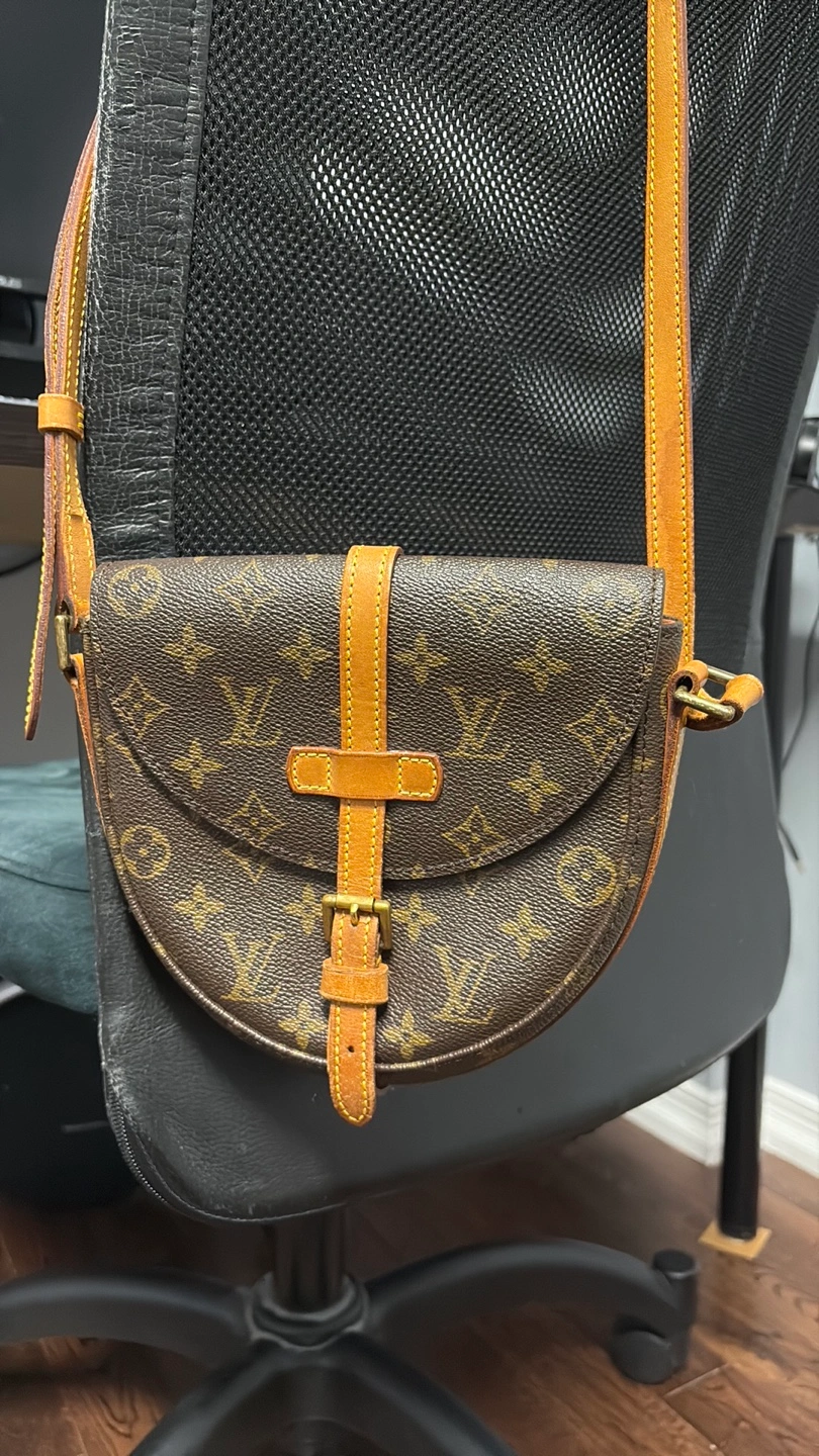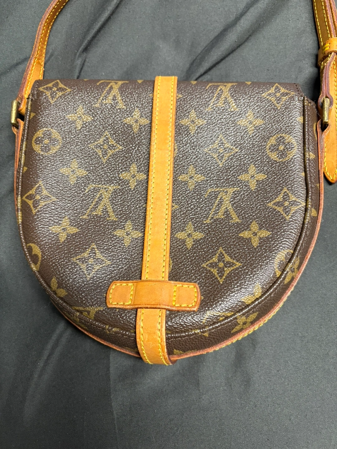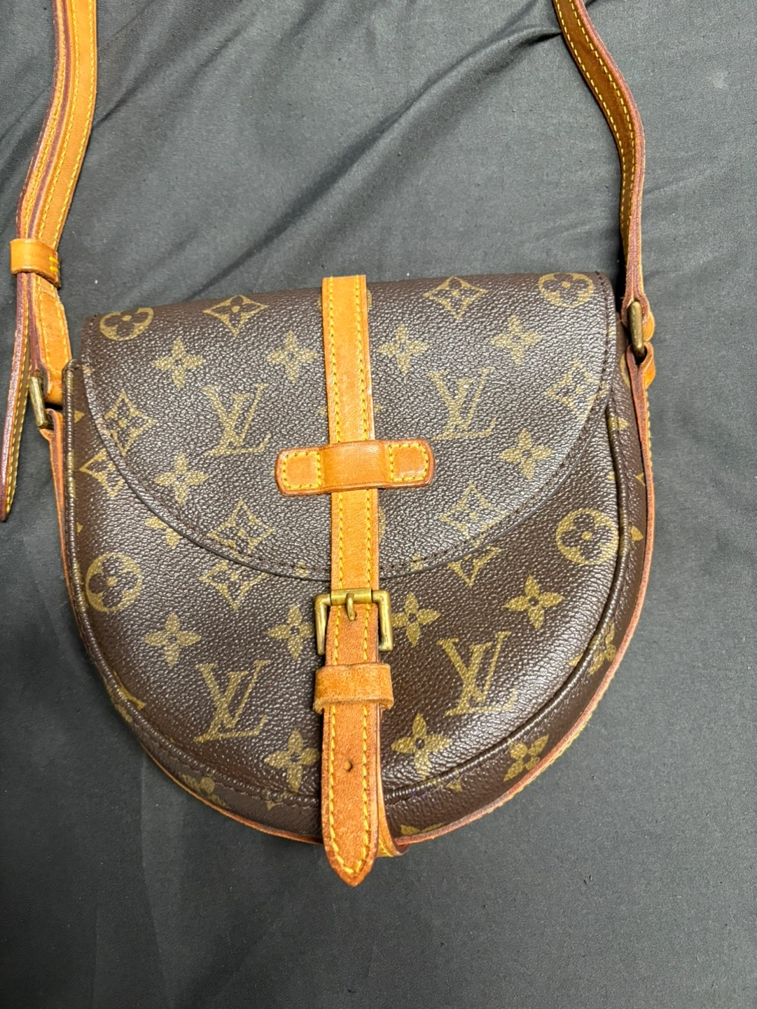 Pre-loved Louis Vuitton Chantilly PM Monogram crossbody bag. Adjustable strap, gold hardware. Bought this in LV facebook group. I can provide the certificate of authenticity from the seller. The timeless Louis Vuitton Chantilly bag, made of Monogram canvas and natural leather, buckle closure, adjustable shoulder strap. Flaws - Signs of usage - watermarks - rubs Leather is flawless and still vibrant 21cm x 23cm x 6cm (8.26'' x 9.05'' x 2.36'')
