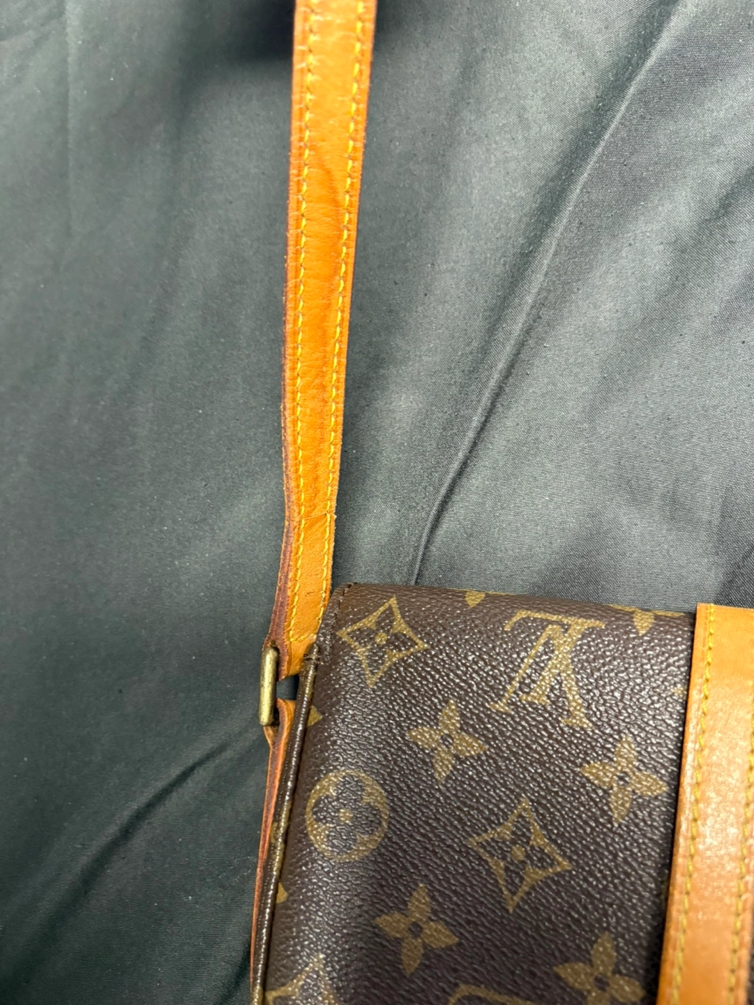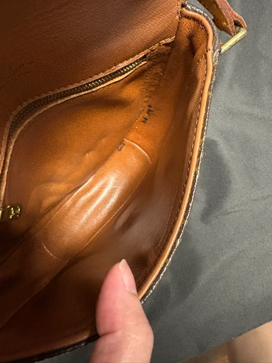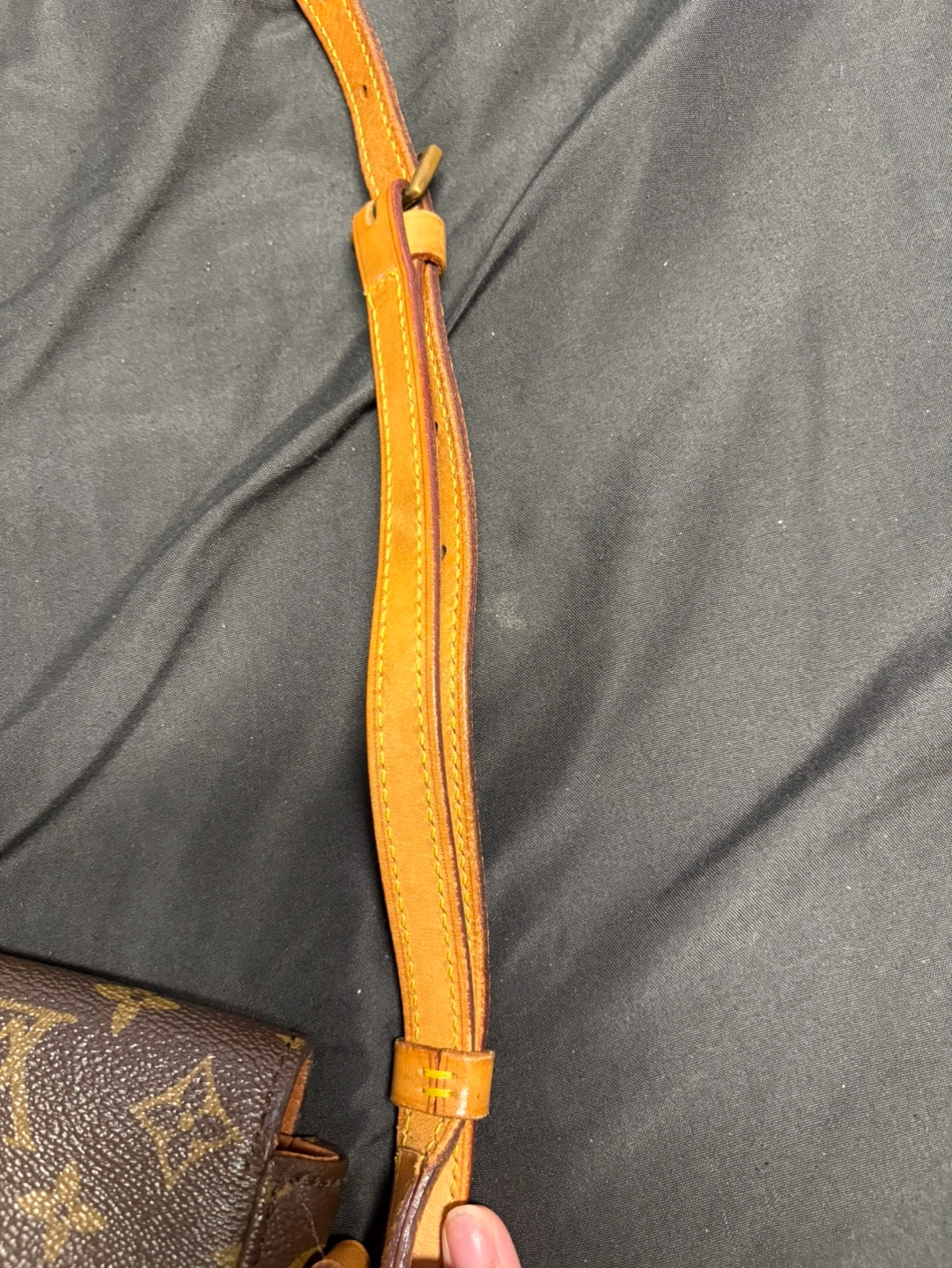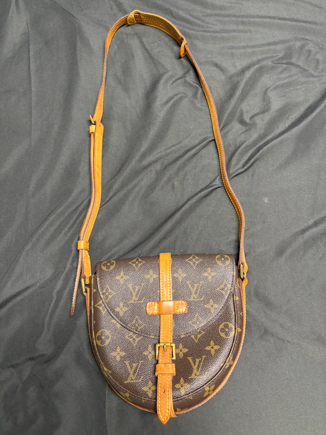 Pre-loved Louis Vuitton Chantilly PM Monogram crossbody bag. Adjustable strap, gold hardware. Bought this in LV facebook group. I can provide the certificate of authenticity from the seller. The timeless Louis Vuitton Chantilly bag, made of Monogram canvas and natural leather, buckle closure, adjustable shoulder strap. Flaws - Signs of usage - watermarks - rubs Leather is flawless and still vibrant 21cm x 23cm x 6cm (8.26'' x 9.05'' x 2.36'')