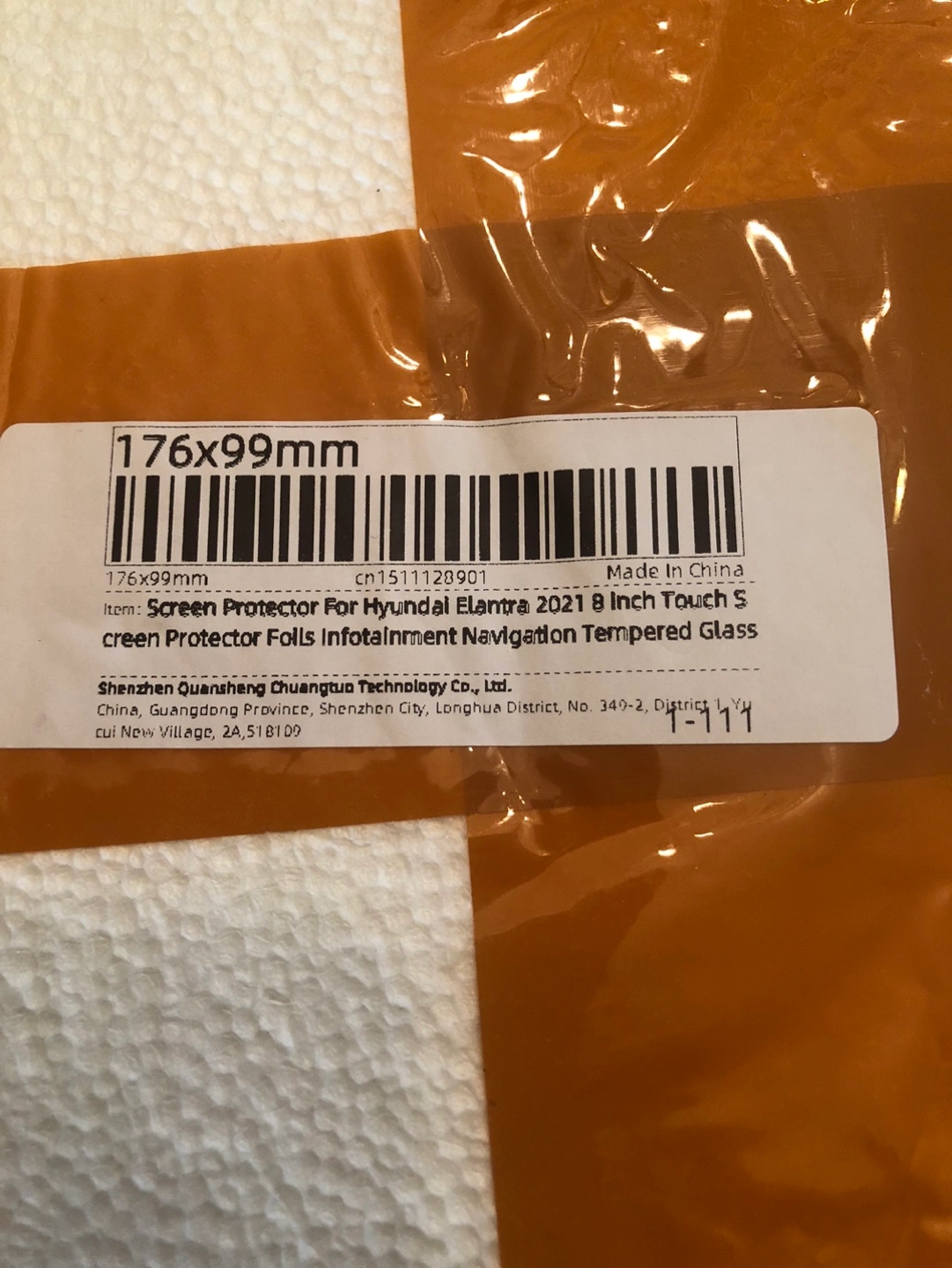 Tempered glass screen protector for Hyundai Elantra 2021. 8 inch touchscreen.