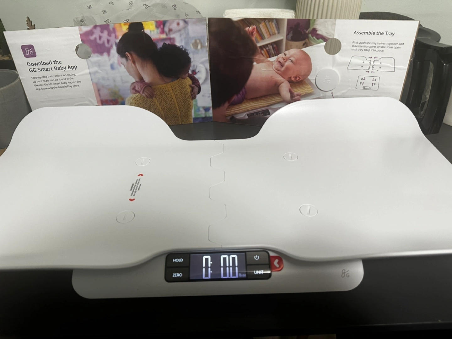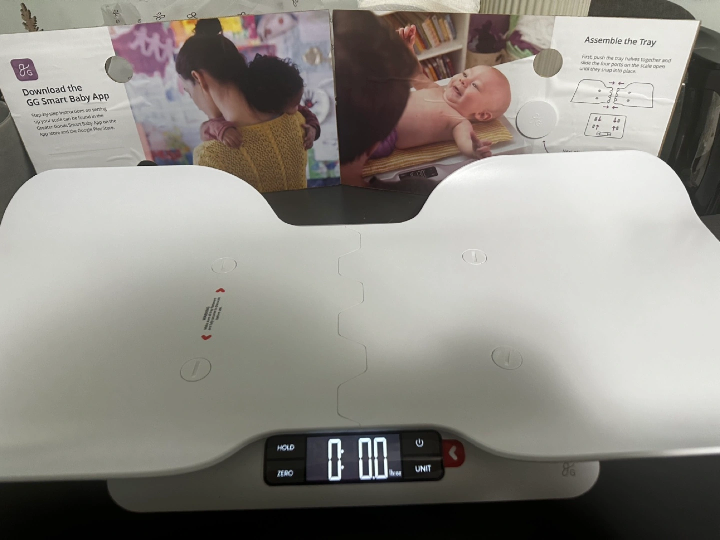 Baby scale with app compatibility, includes instructions