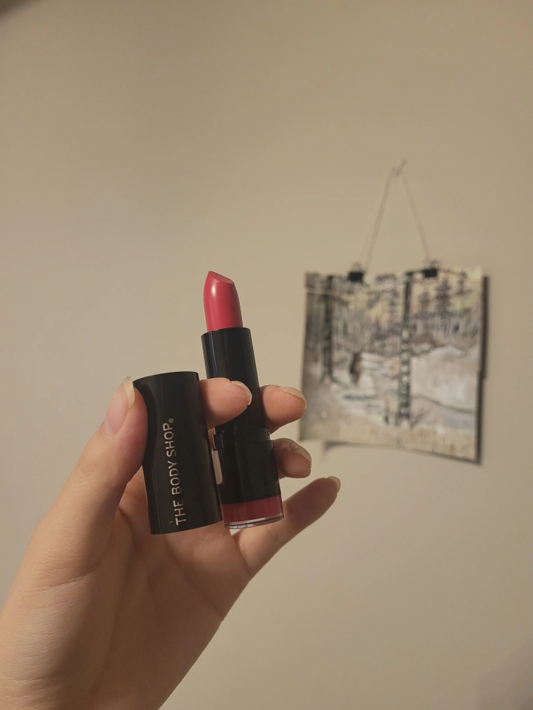 The Body Shop lipstick in the shade 210 Berlin Oleander. Colour Crush formula.