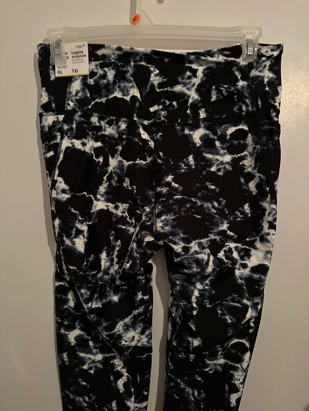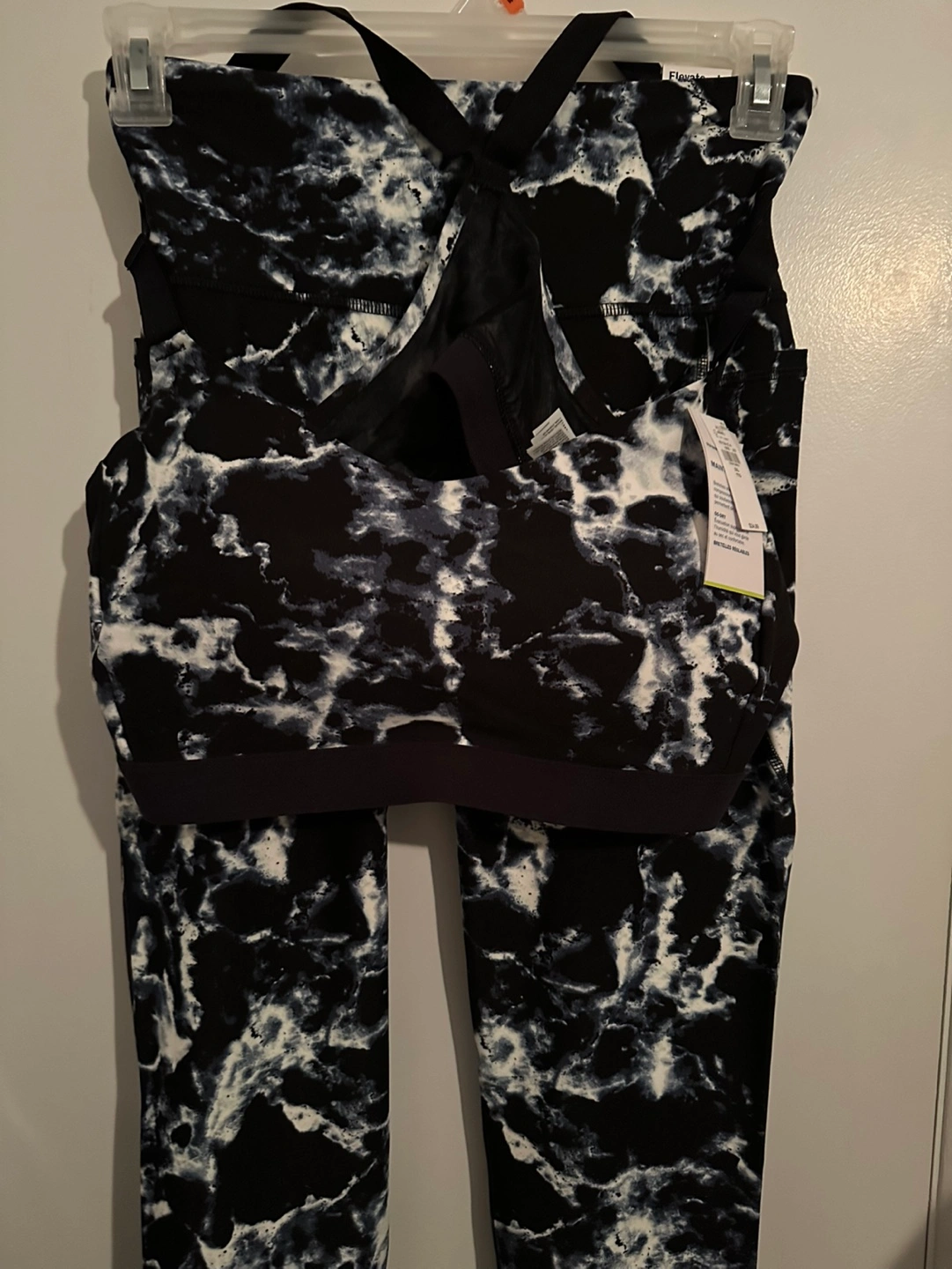 Black and white marble print sports bra and leggings set. Size XL for leggings and XXL for sports bra. Never worn with tags. Pieces were purchased separately. Top alone was $34.99. Selling as set. Time for a closet clean out.
