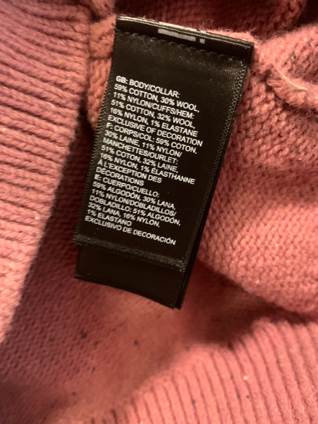 Pink sweater with a 1/4 zip and a mock neck. Long sleeves. Size XS. Initially bought for $120 USD. Nothing wrong with it, just not really a colour I enjoy wearing. Only worn once.