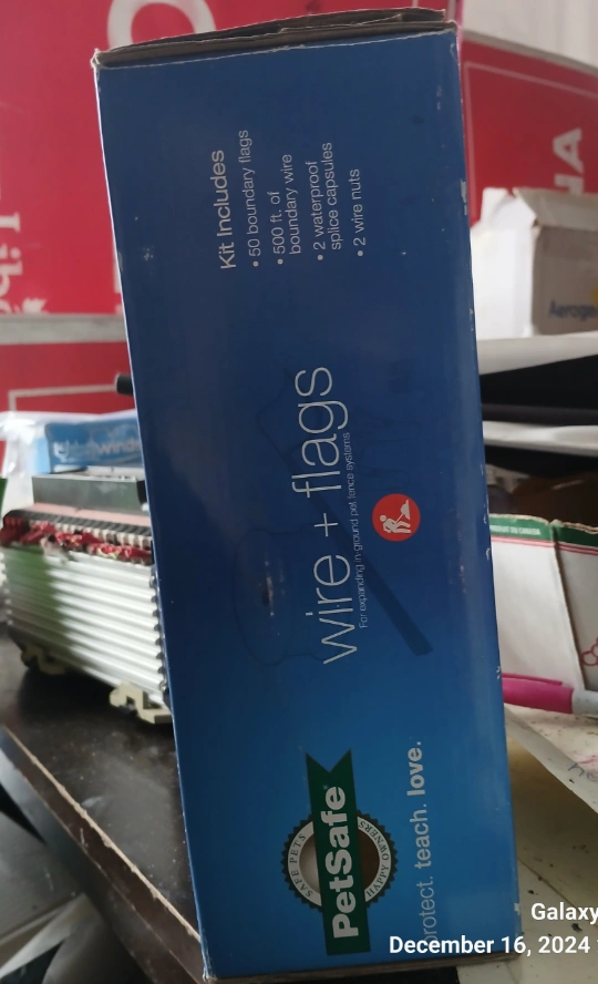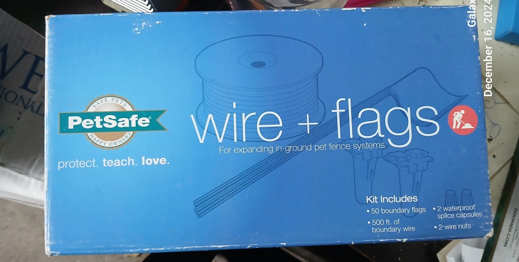 pets safe wire and flags for expanding in ground pet fence system inclueds 50 boundary flags, 500 ft of boundary wire, 2 waterproof splice capsules, 2 wire nuts. For expanding in-ground pet fence systems. brand new in box I have 4 of them asking $25.00 each or asking $80.00 for all 4 boxes I'm open to offers and possibly trading for something.