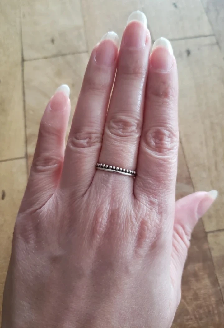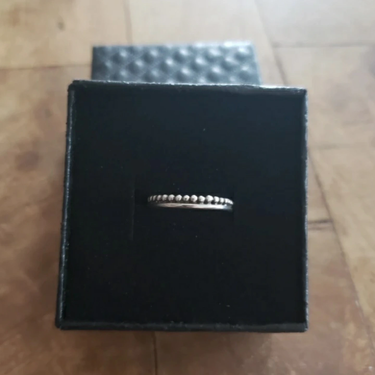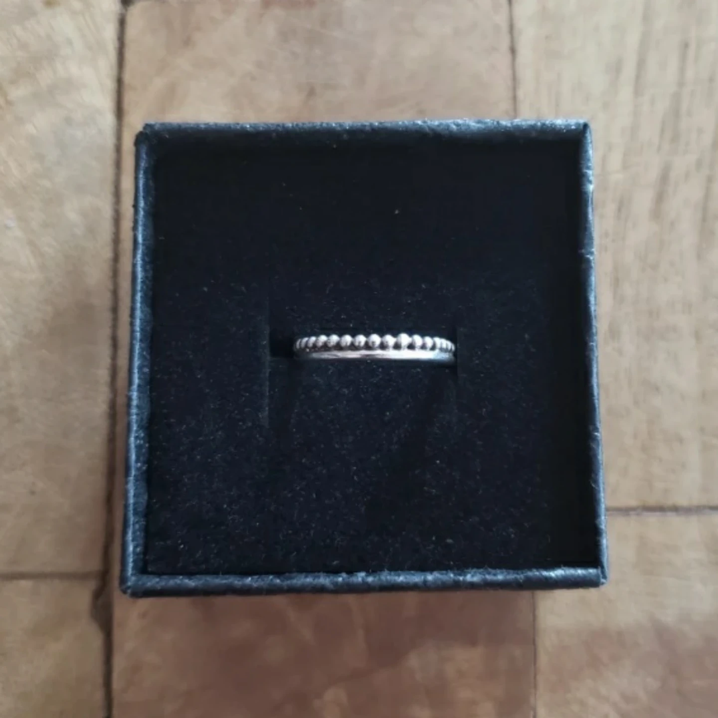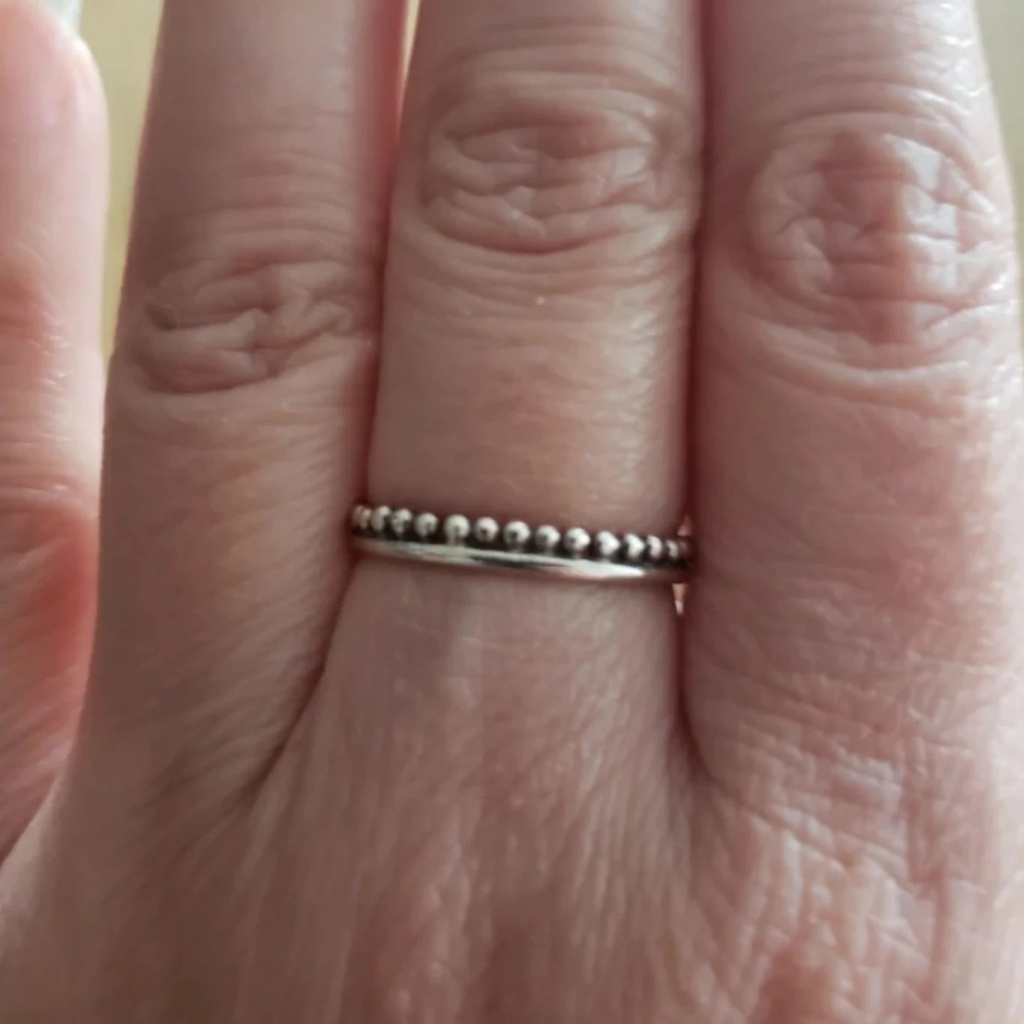 Sterling silver ring with beaded accents. Size 5. Comes in a black gift box.