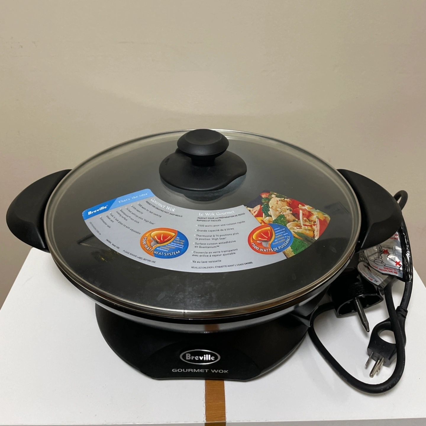 1500 watts, 6 litre capacity, 14 heat settings, high sear setting, Quantum non-stick surface, dishwasher safe. Only used twice so it’s like new. The base and cable are detachable for easier cleaning The glass lid has steam vent control Heat up very fast and powerful Retail over $200. Decluttering