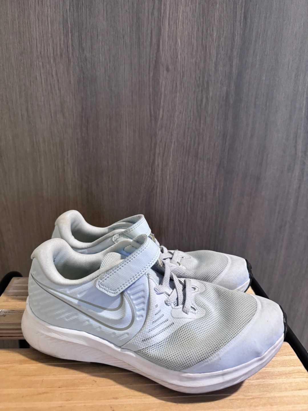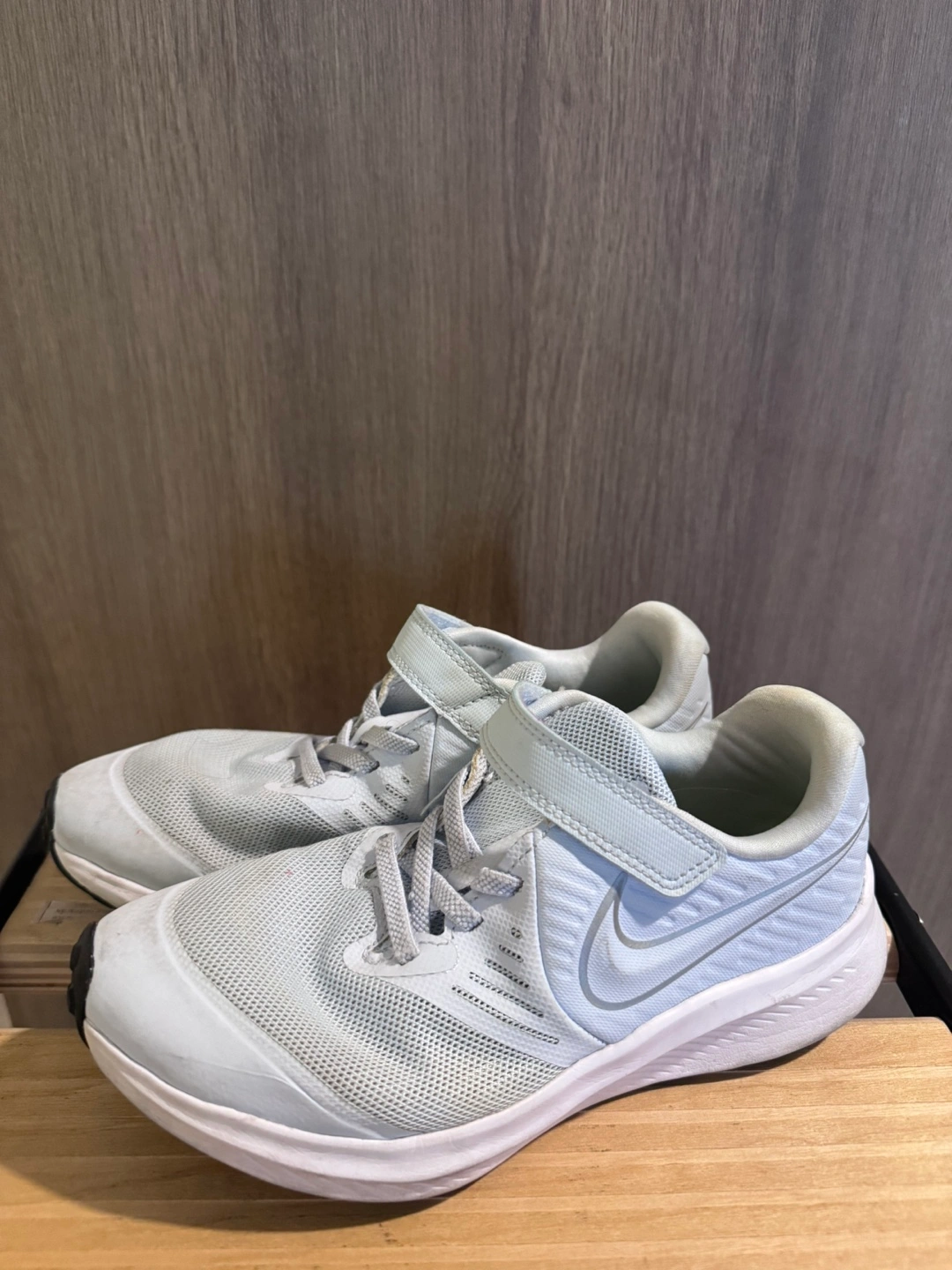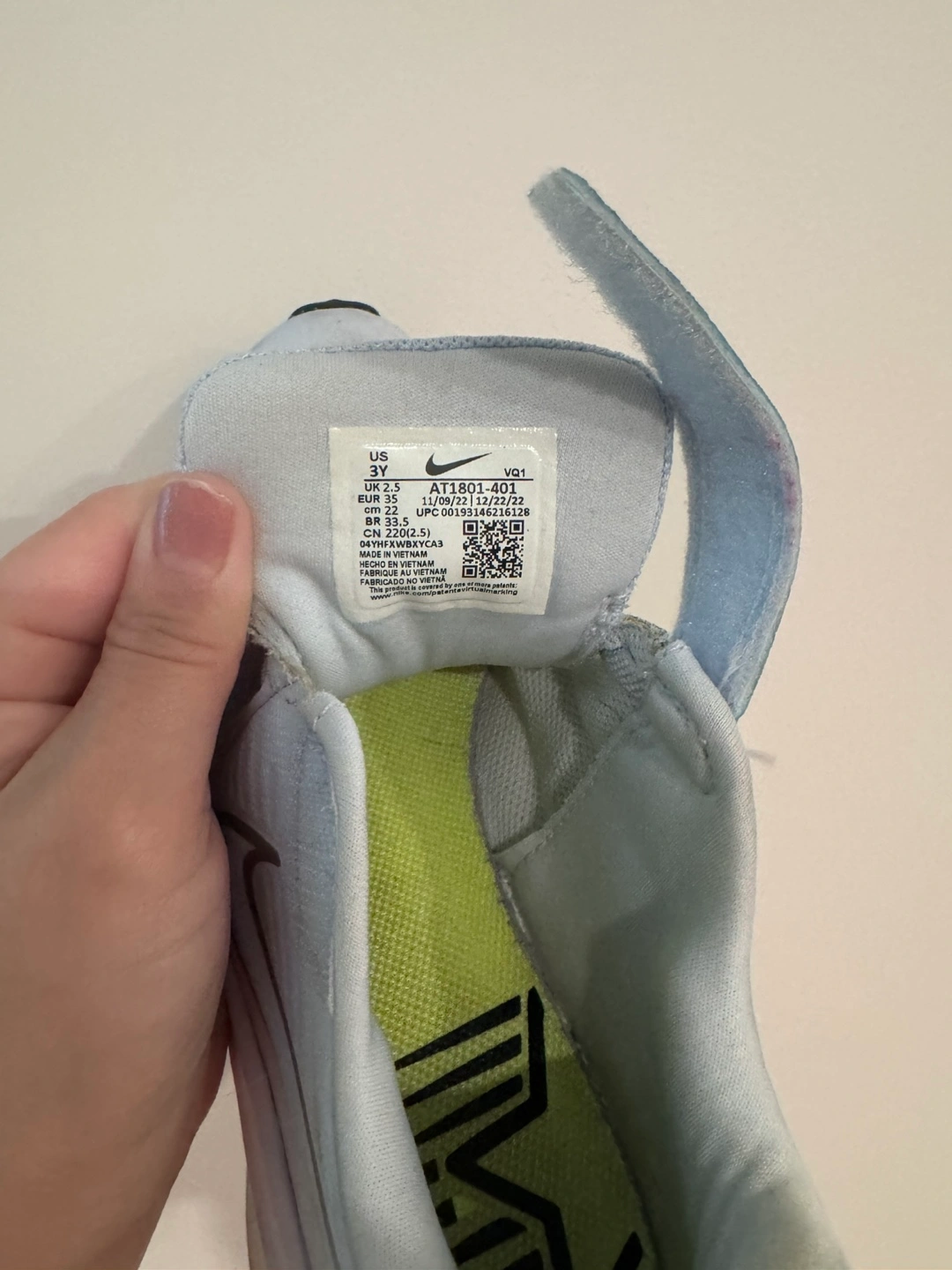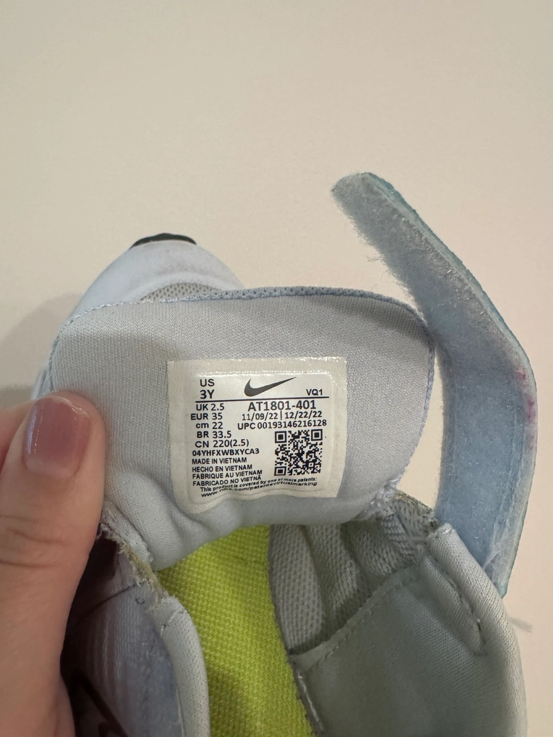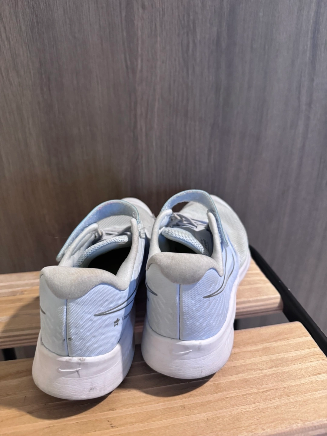 Light blue running shoes. Velcro and lace up closure. Size US 3Y