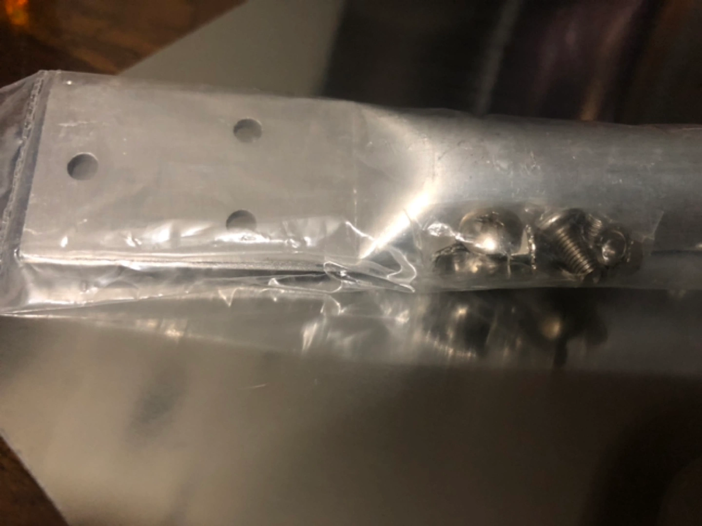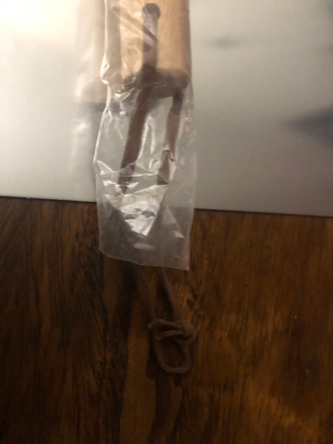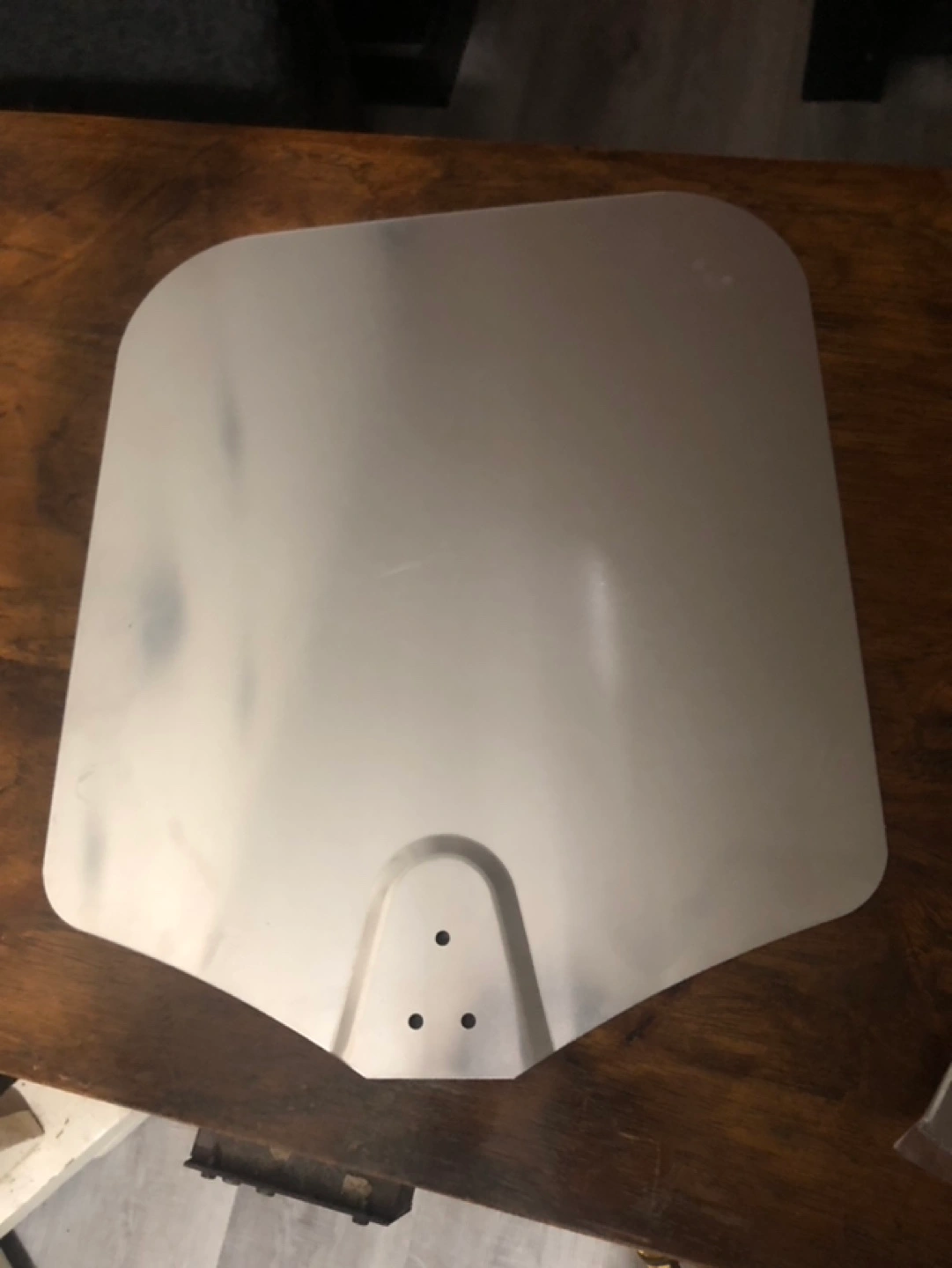 Aluminum pizza peel with a wooden handle. Includes mounting hardware and a strap to hang on a wall. Unused.