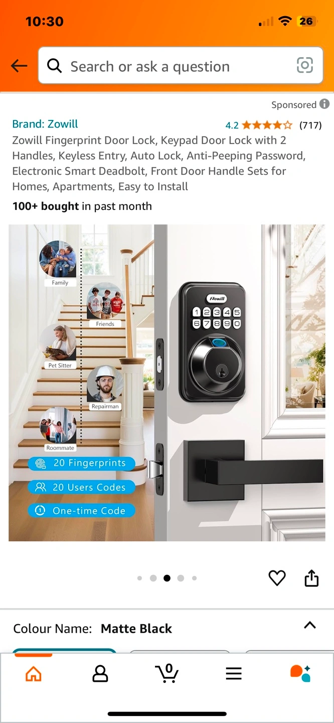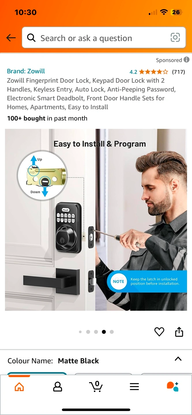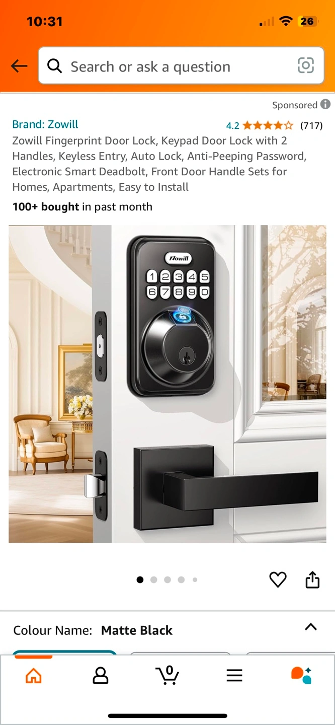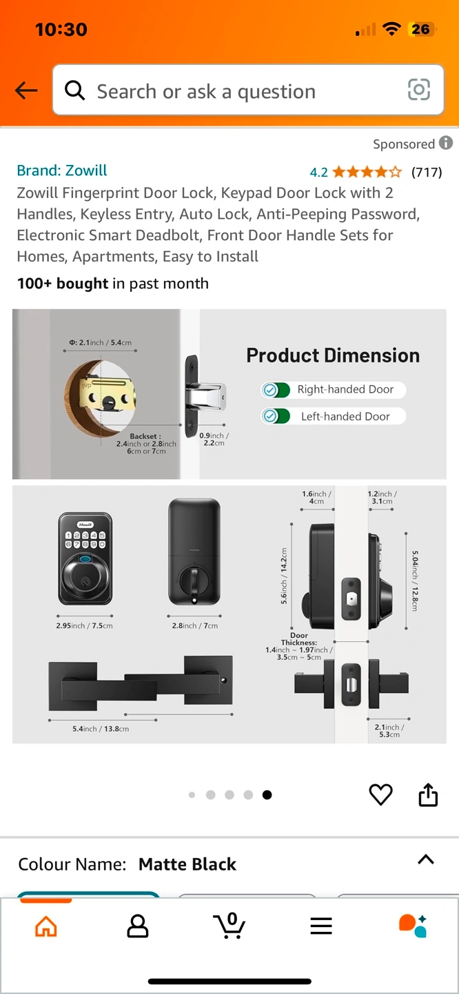 Brand new Zowill Fingerprint Door Lock, Keypad Door Lock with 2 Handles, Keyless Entry, Auto Lock, Anti-Peeping Password, Electronic Smart Deadbolt, Front Door Handle Sets for Homes, Apartments, Easy to Install Pickup Jane and Bloor or could meet in North York