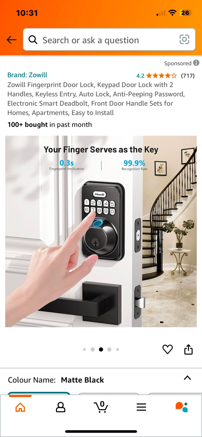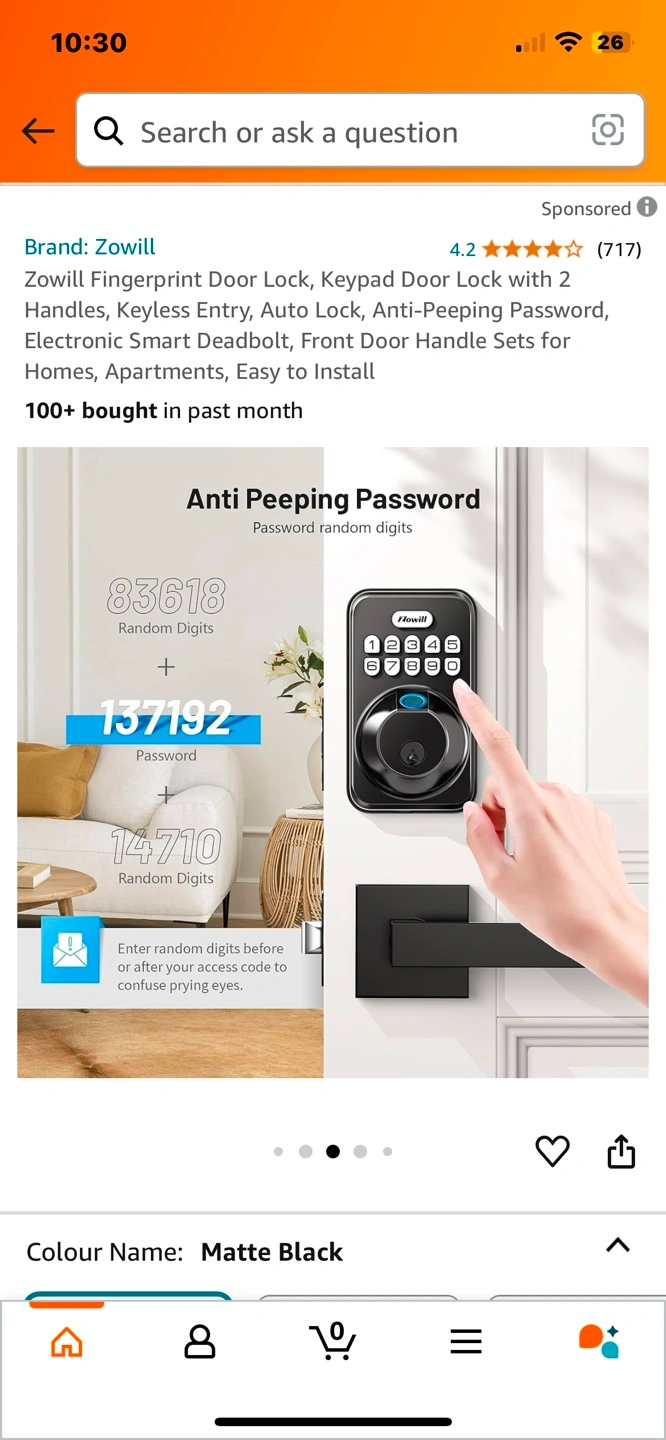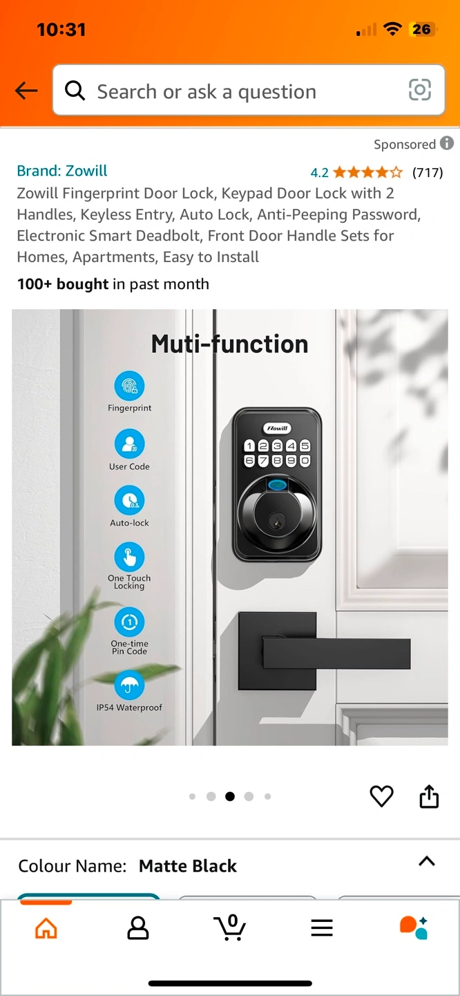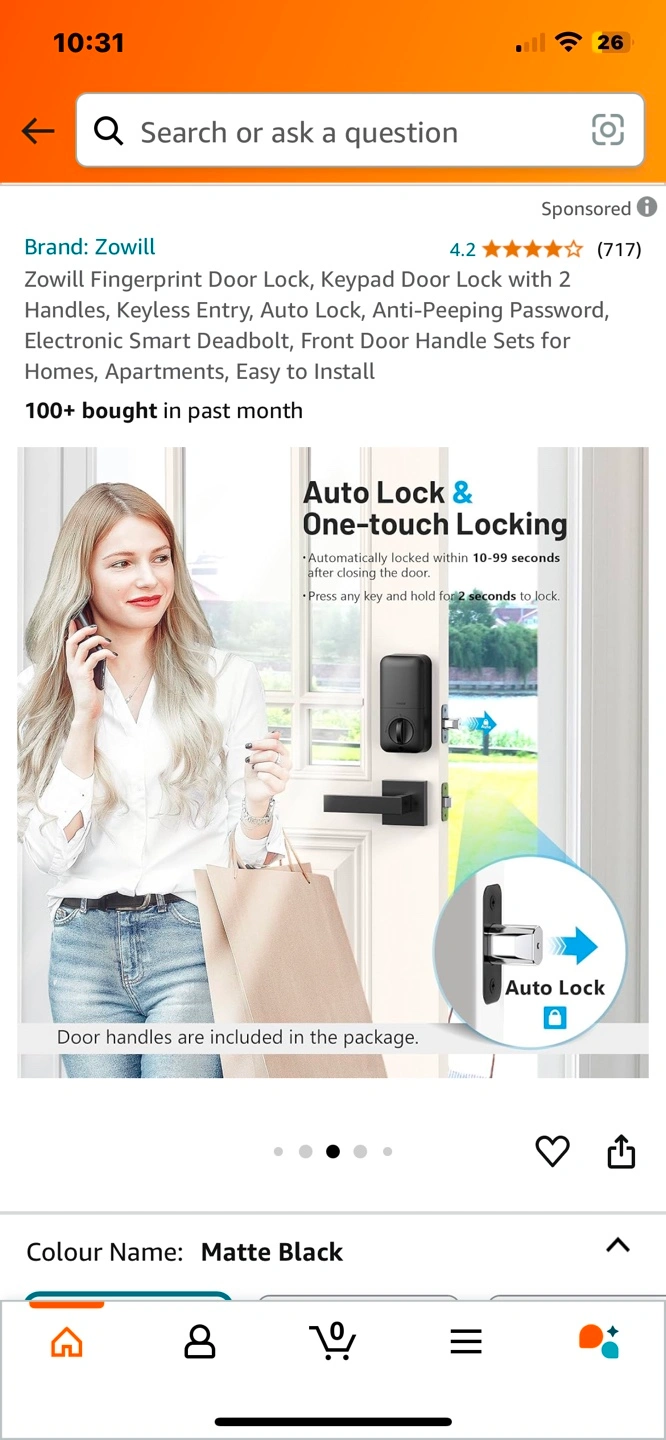 Brand new Zowill Fingerprint Door Lock, Keypad Door Lock with 2 Handles, Keyless Entry, Auto Lock, Anti-Peeping Password, Electronic Smart Deadbolt, Front Door Handle Sets for Homes, Apartments, Easy to Install Pickup Jane and Bloor or could meet in North York