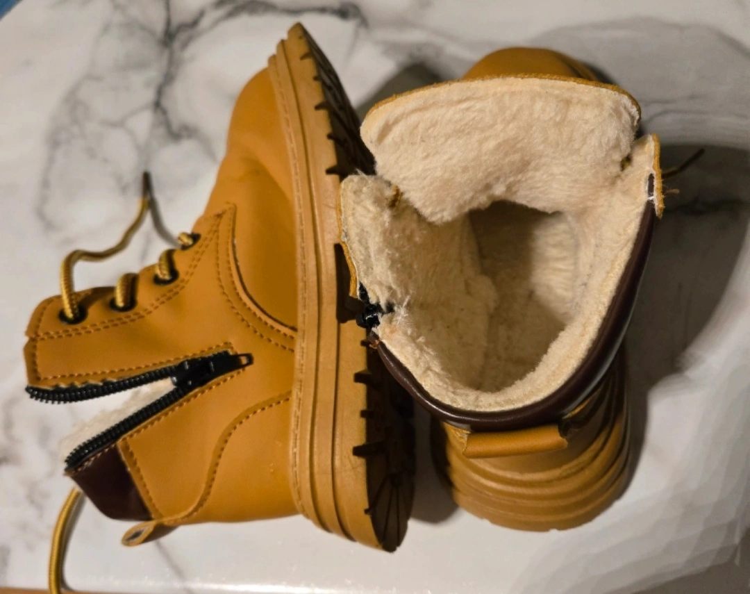 Tan winter boots with fur lining. Size 29 [US SIZE 12 - TODDLER]. Lace-up with side zipper. WORN BEFORE✨️ CURBSIDE PICK UP ONLY..✨️👋🏾 79 CLEARVIEW HEIGHTS, YORK, ON.