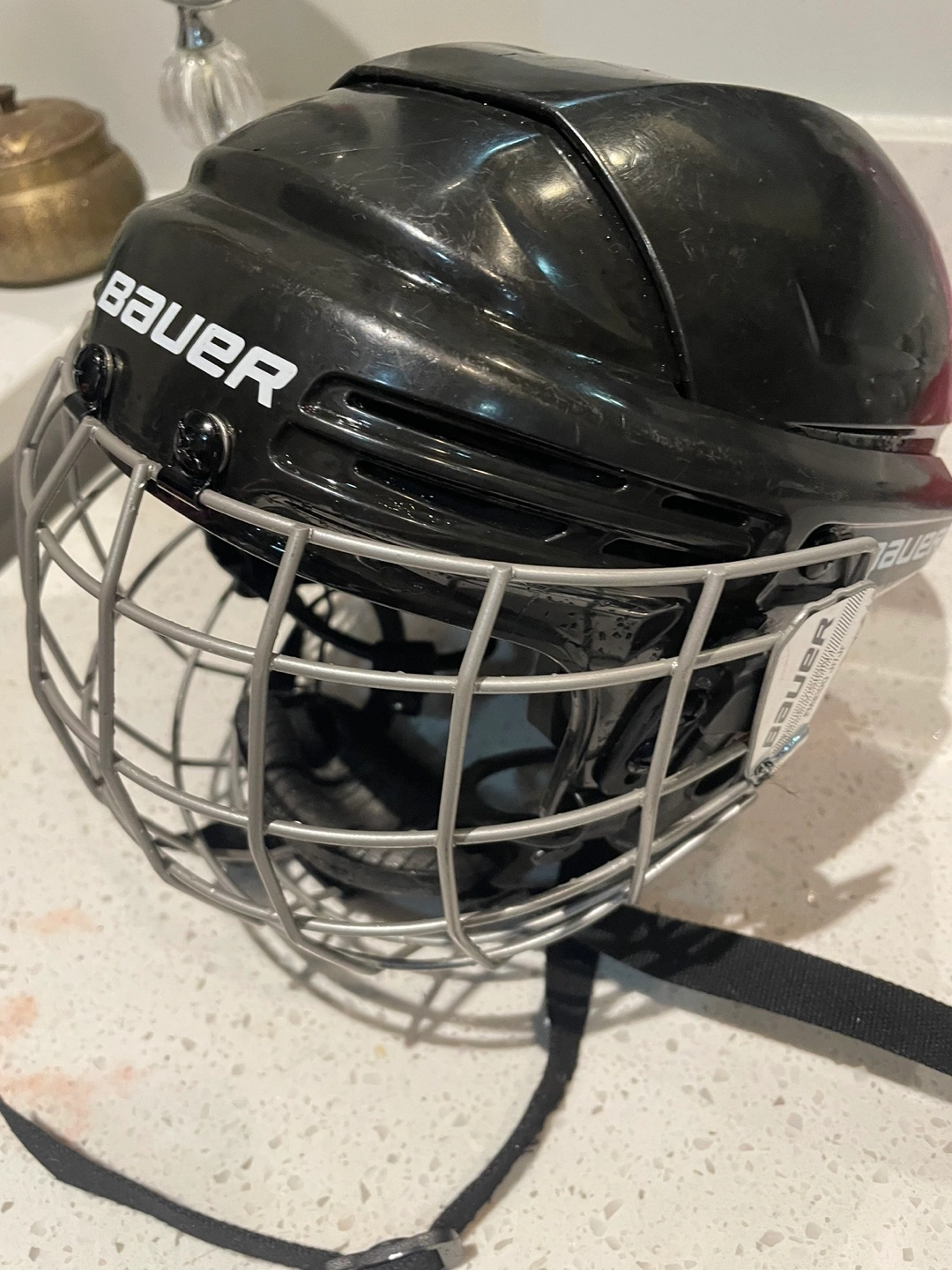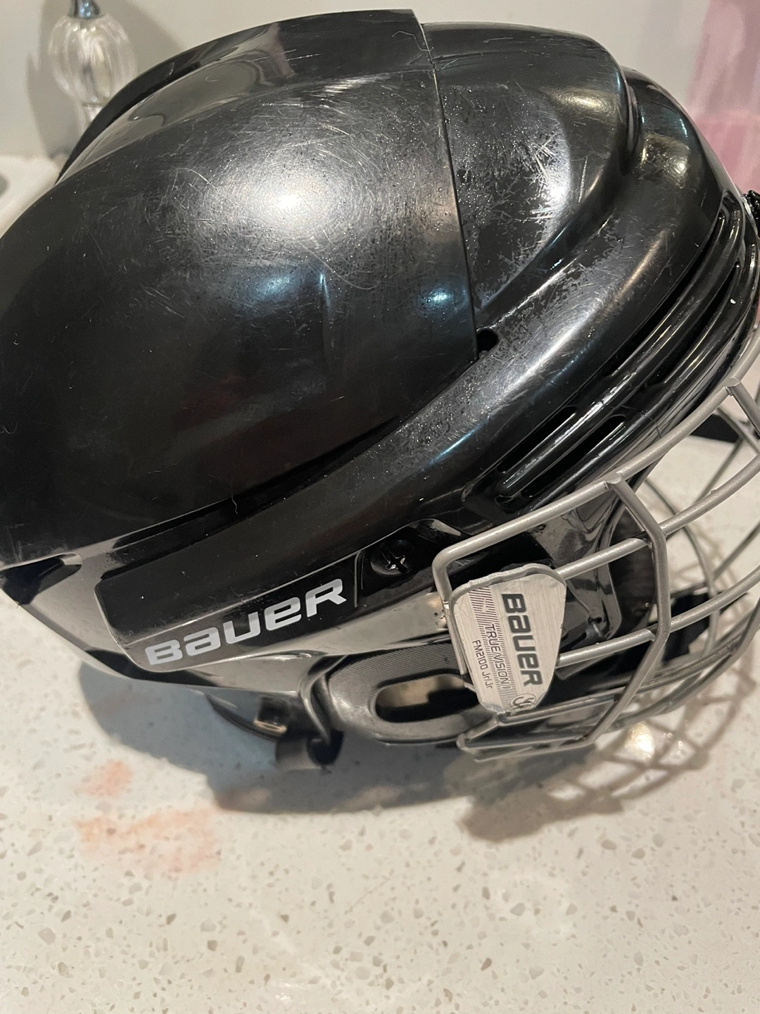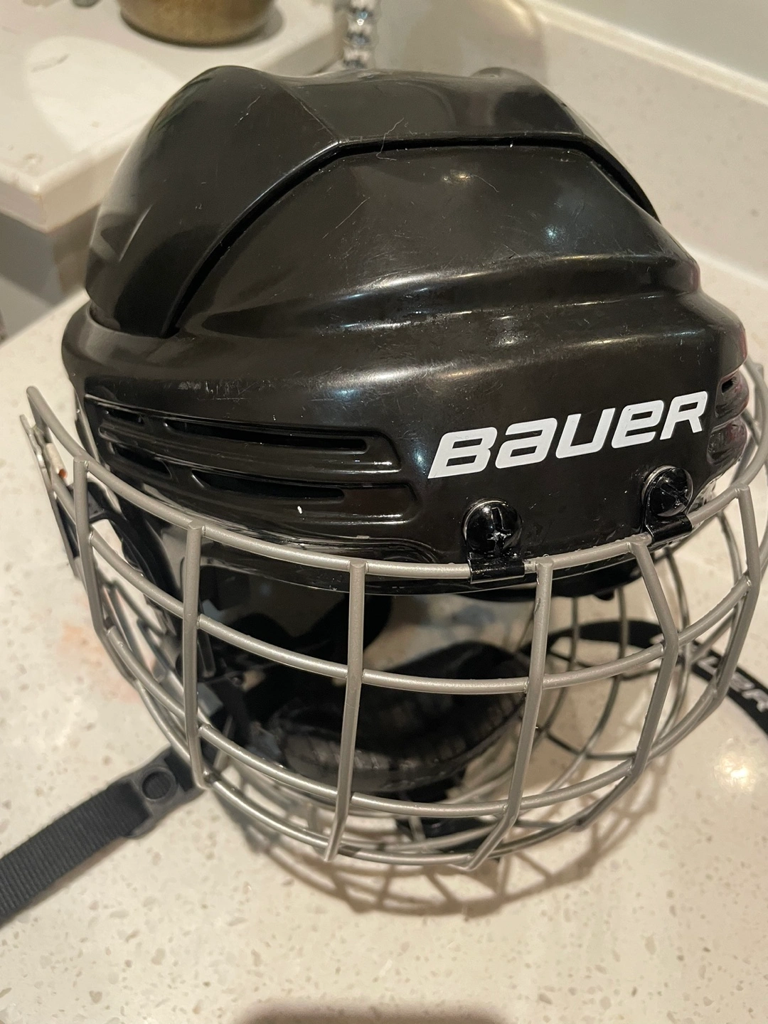 Black hockey helmet with cage. Includes chin strap and in excellent conditions. Size junior. BHH2100JR