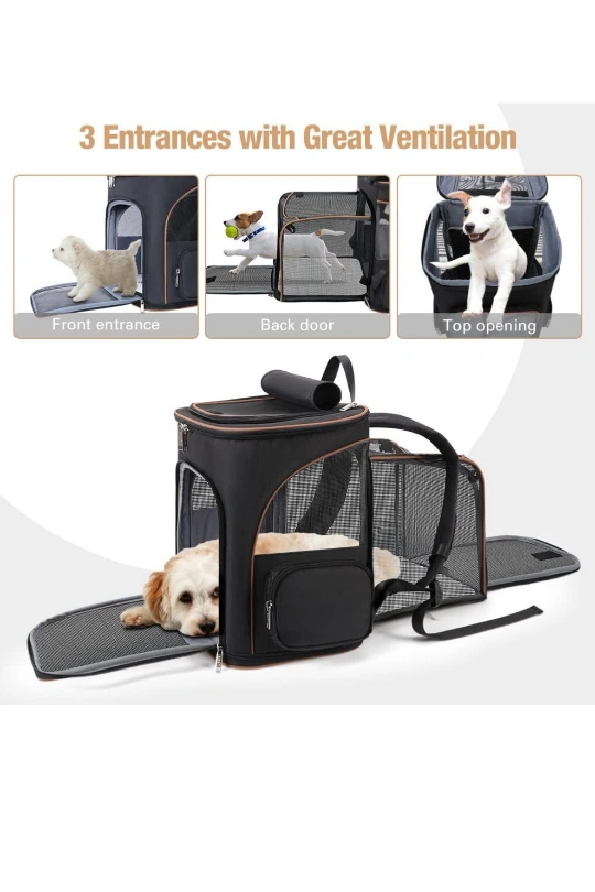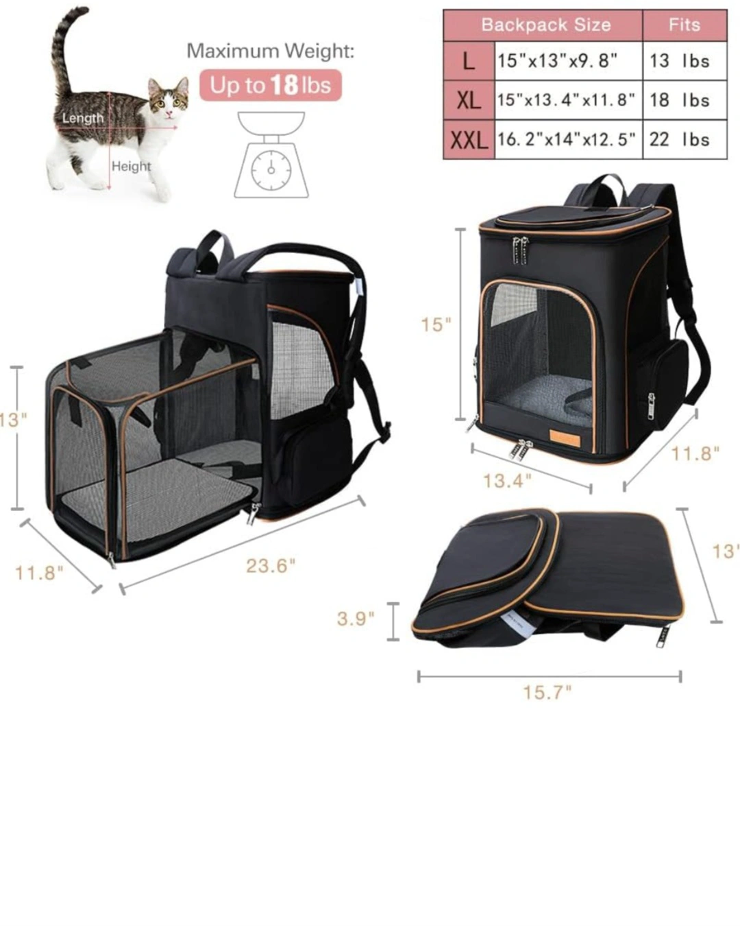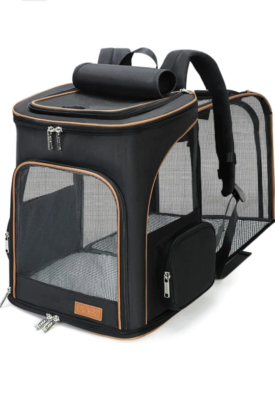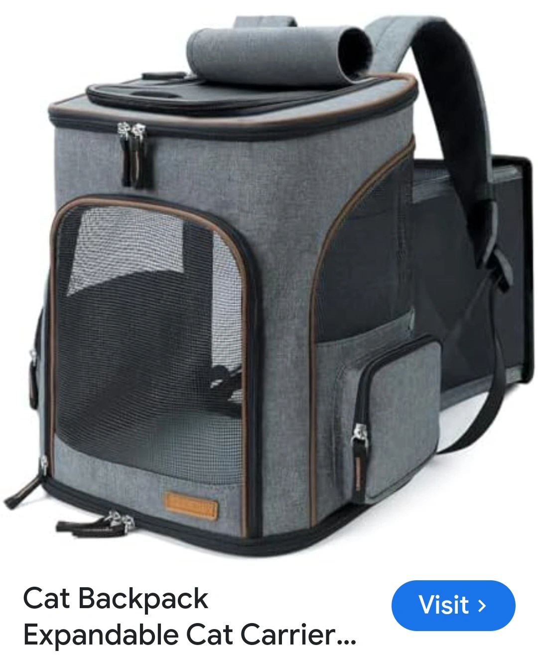 Brand new... LEKE grey pet carrier backpack. Airline approved pet backpack carrier for cats, small dogs, puppies under 13 lbs. Expandable carrier with three entrances and great ventilation. Has side pockets too.