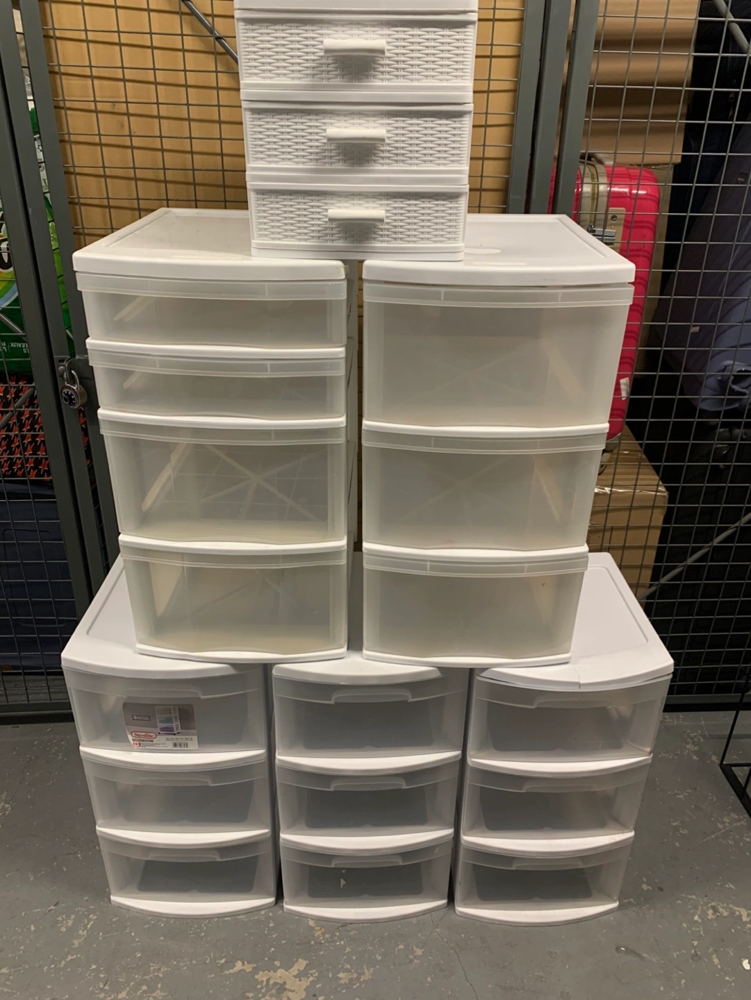 ‼️MUST GO‼️ *Some needs cleaning. *Most are in perfect condition, others have a minimal wear and tear showed in pics. *Buy 1, 2 or 3=$20 each. •Buy 4=$ TBC •Buy 5=$ •Buy all 6=$ ————- -“Sterilite” (3 units) •Clear and white. •3 identical units, 3 drawers •one unit has a small crack on top. •an other a crack on drawer’s side (not pic.) -“Gracious Living” (3 units): •Clear and white •2 are same size units, but have different drawers layout. •Some scratch on top. •1 small storage unit w/ 3 drawers •all white w/ some design at the front. ————— Pick-up and cash only. Map location on listing. Thx! 💛Look at my other listings for great bundle discounts.