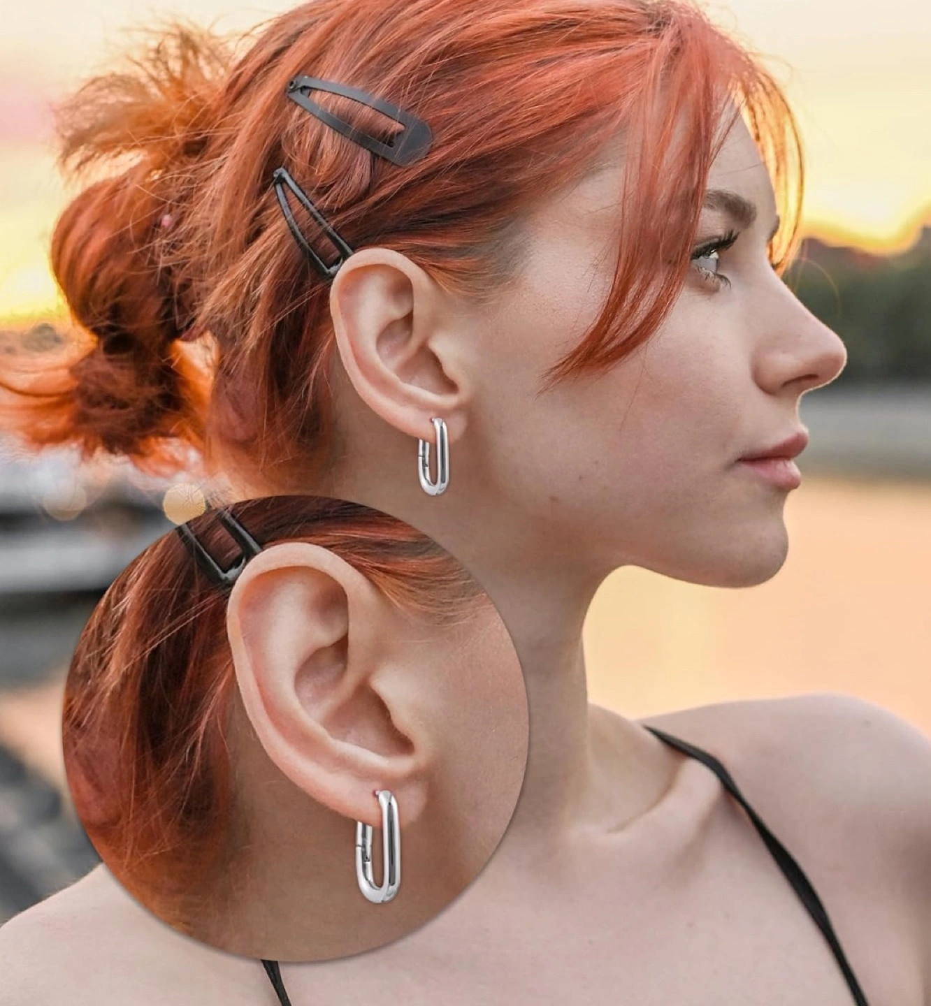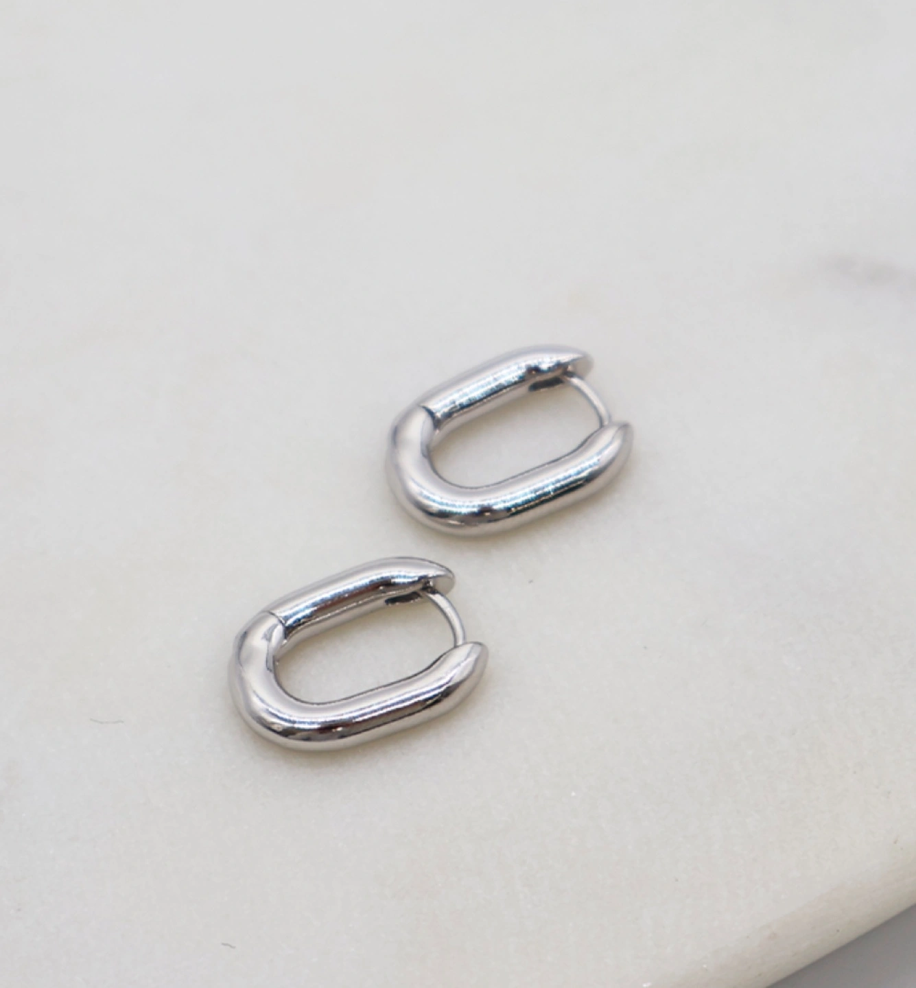 Chunky Silver Rectangle U Hoops, 12 mm Geometric Huggie Hoop Earrings Silver plated & Hypo Allergenic . Pick up & cash only pls Pick up is in Nobleton (king rd & hwy 27)