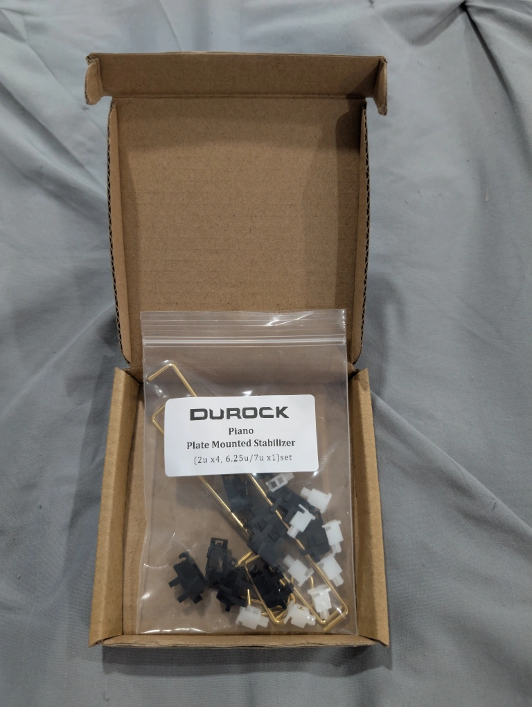 Durock Plate Mounted Stabilizers for mechanical keyboards. Includes two 2u stabilizers, four 6.25u stabilizers, and one 7u stabilizer.