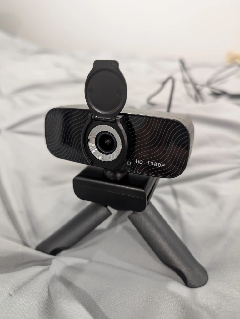 Webcam with tripod stand, privacy cover and stereo microphone. Plug and play USB connection.