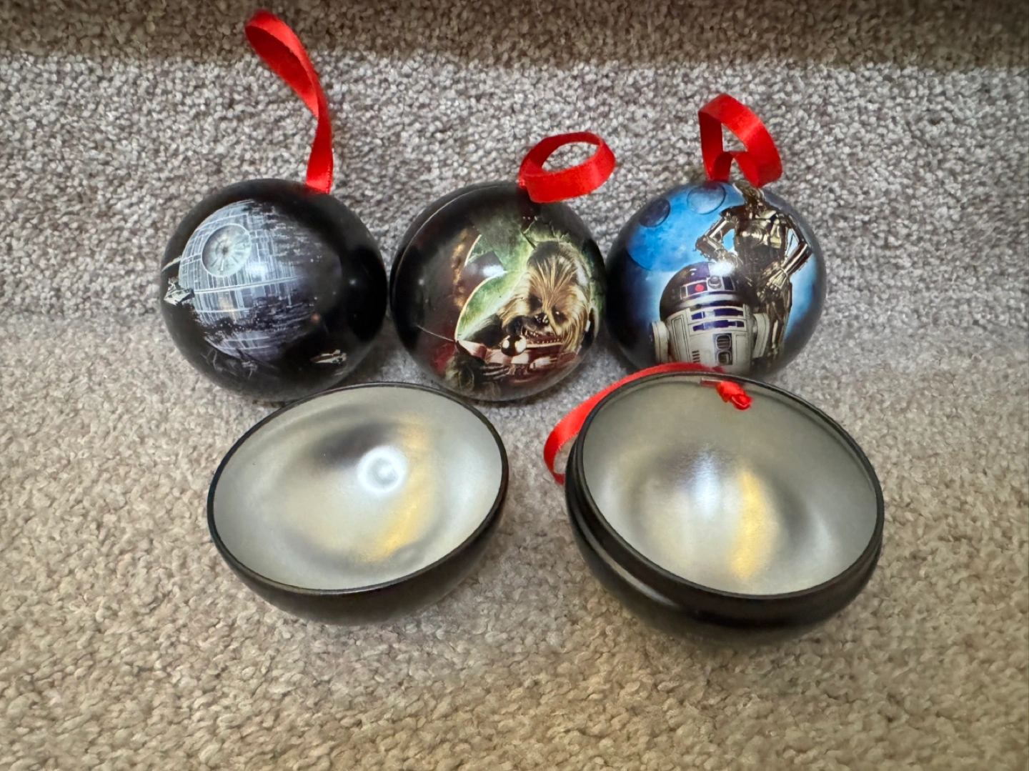 • 4 x Christmas Balls Ornaments • can be opened to give a small gift inside • Made of metal • in some places a little dented. You can't see it, you just feel it a little when you touch it