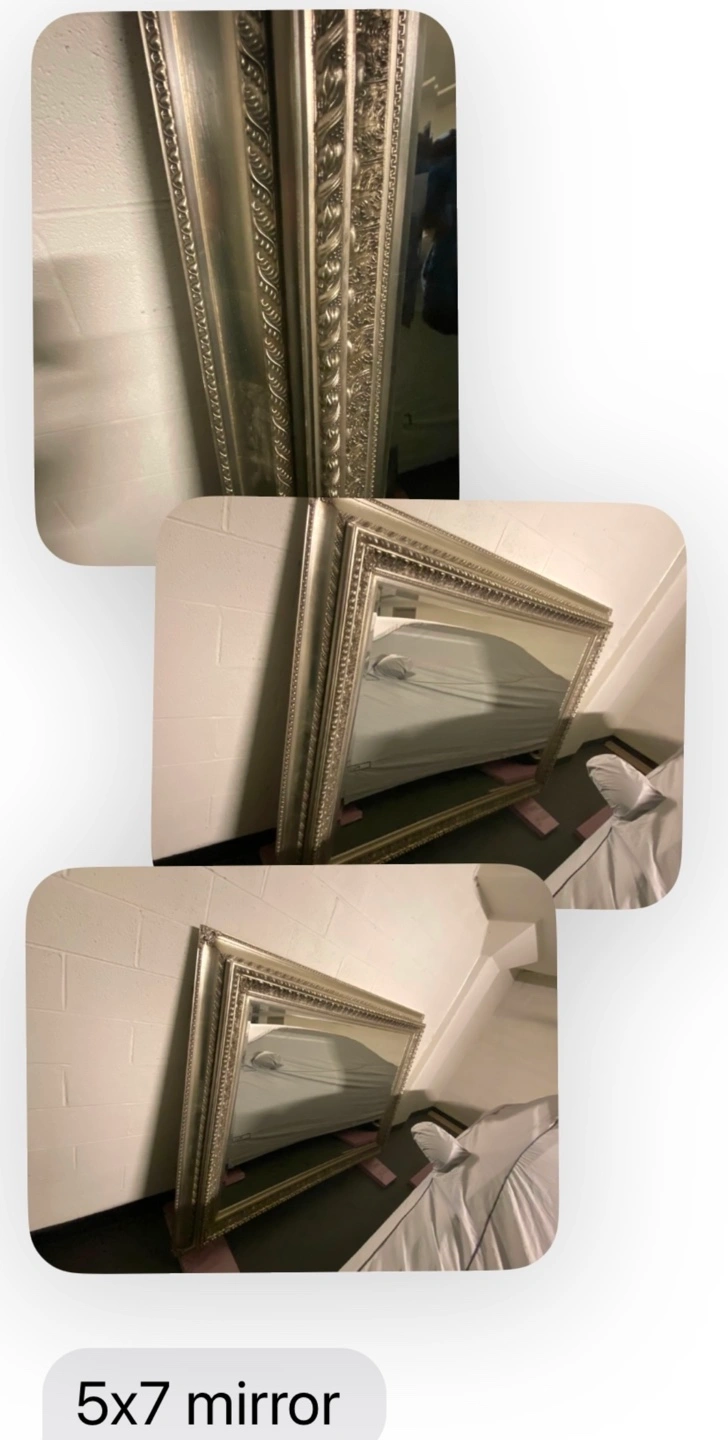 Almost new like big large fancy silver mirror measuring 5 by 7 feet Stand alone or Hanging mirror Asking $375 OBO Pick up is in Woodbridge