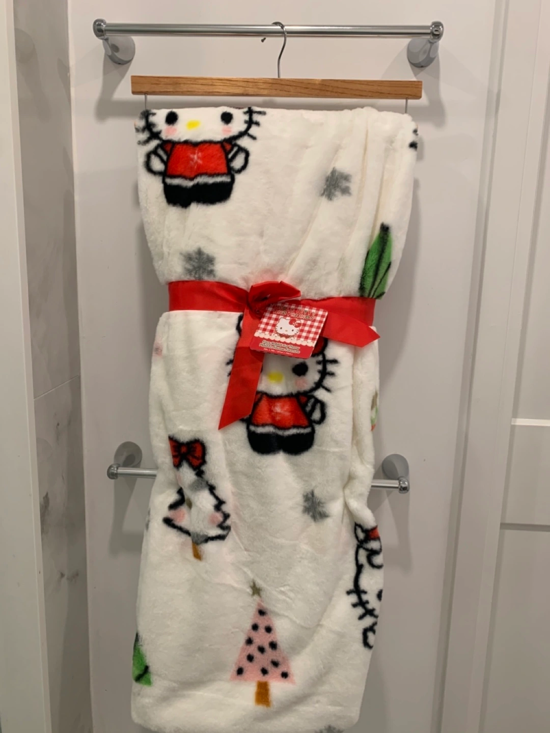 🎄 Brand new with tags, White Christmas-themed Hello Kitty throw blanket with a red ribbon. Faux fur, machine washable. 50in x 70in (127cm x 178cm). Comes from a smoke and pet free home. Serious buyers only please! 🎄