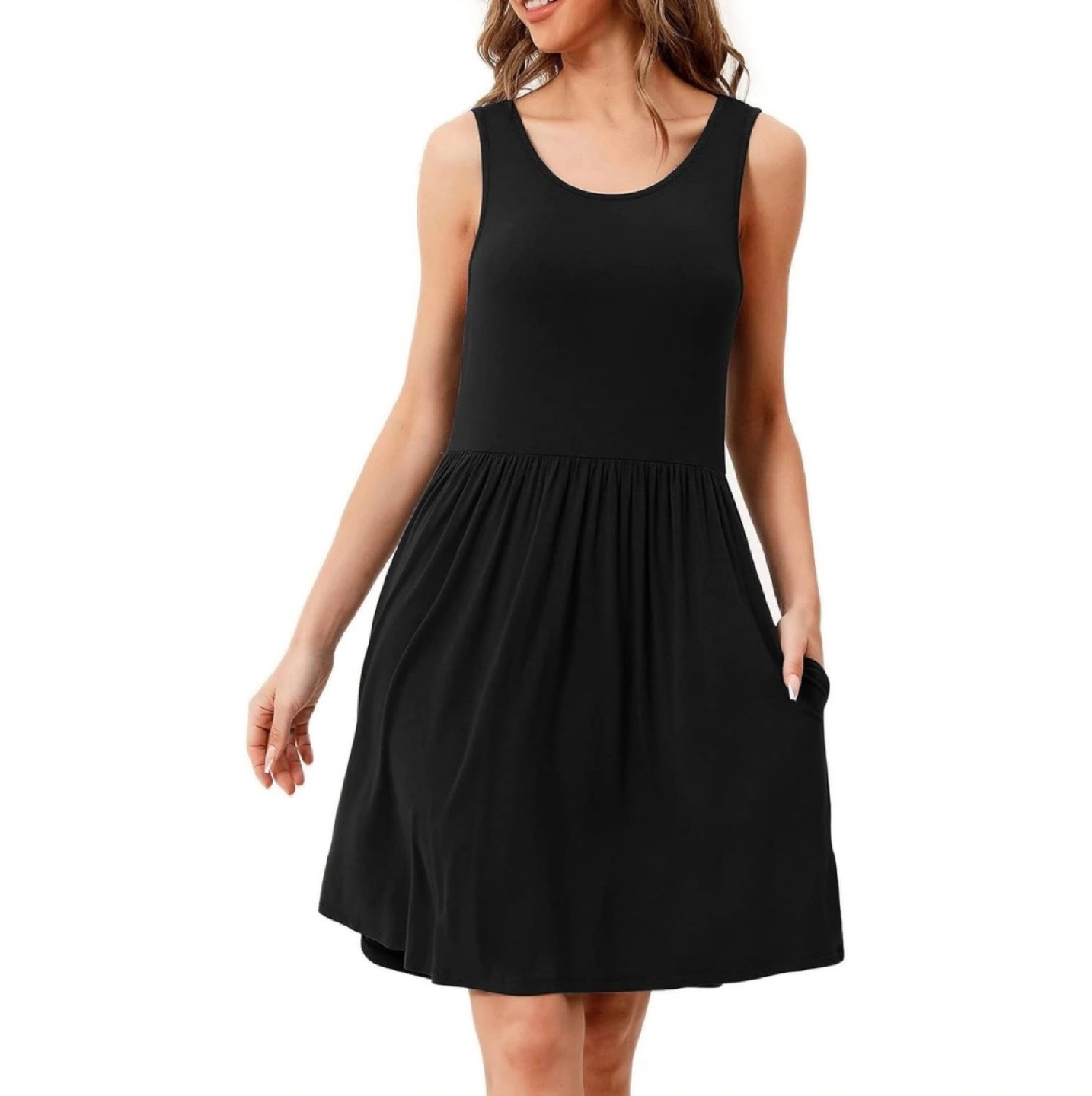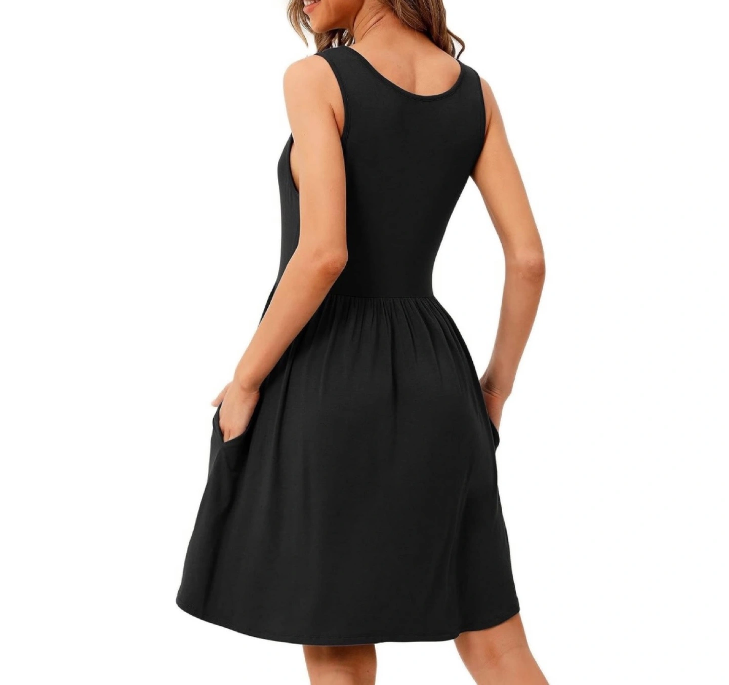 Brand new without tags Pickup Brampton or downtown Toronto Black sleeveless A-line dress with pockets. Size Small. Has pockets on both sides Approximate Measurements: PTP 15.5” (21”-22” with stretch) Length 35”
