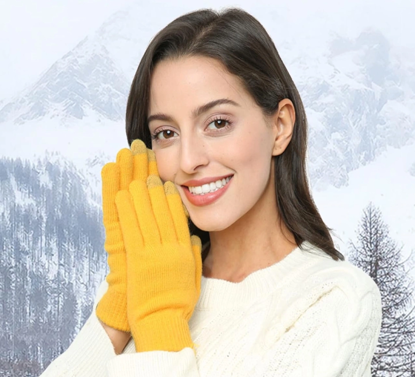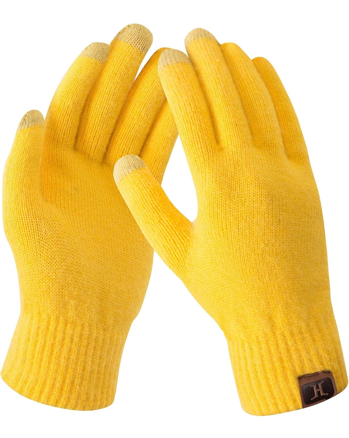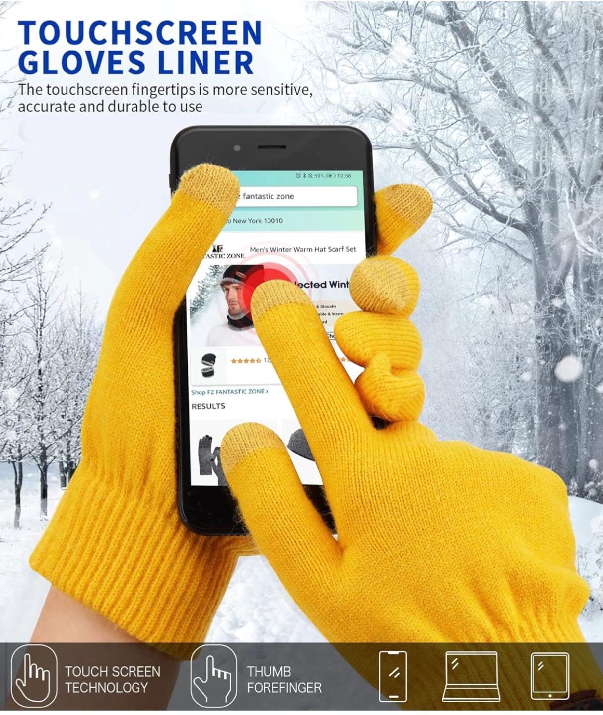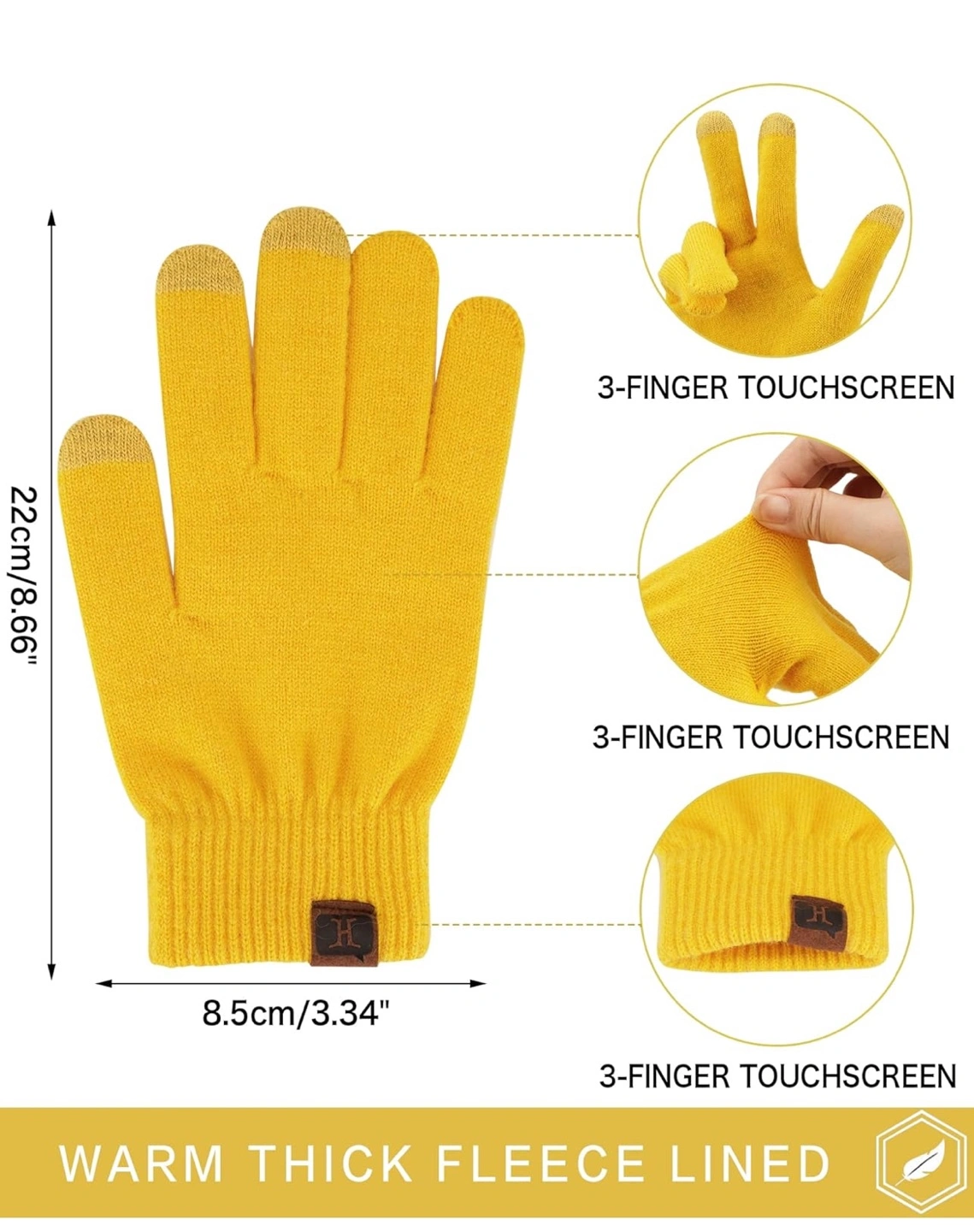 Thick knit cashmere blend gloves with fleece lining. Touchscreen fingertips for using your phone. 3-finger touchscreen technology on thumb, forefinger and middle finger.