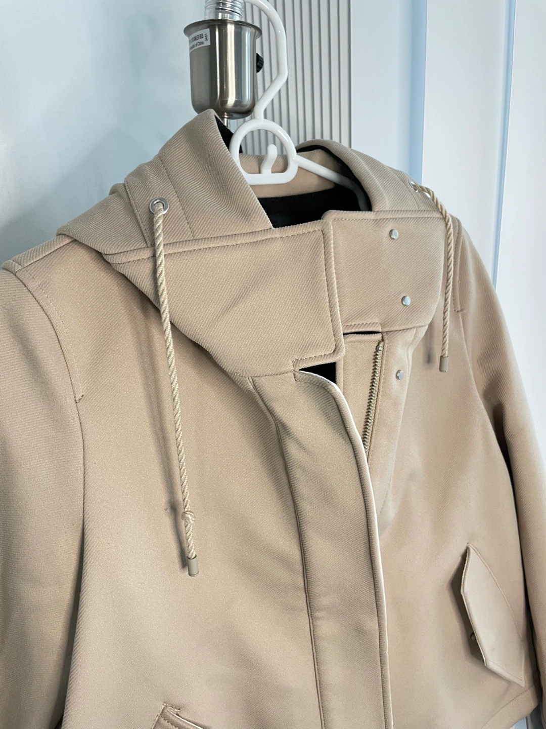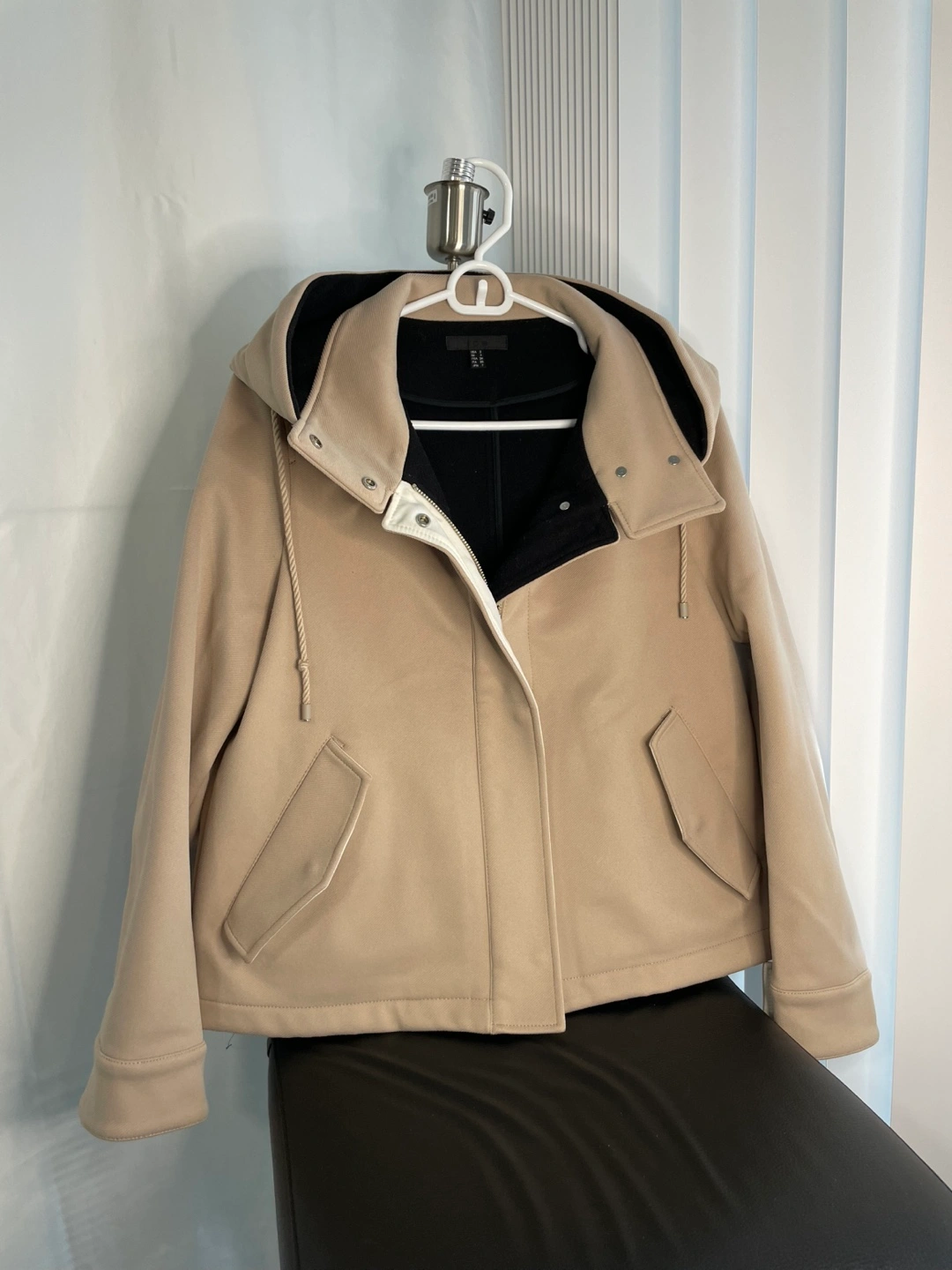 Beige hooded jacket with a zipper closure and pockets. It has a black lining. ❤️Buy 1, Get 2nd 50% OFF 🎉 ❤️Buy 3, Get 4th FREE 🛒 (Lowest-priced item from the selected items applies) ------------ 🌟Firm price 🌟Pick up at subway wellesley station 🌟Check my listings for more