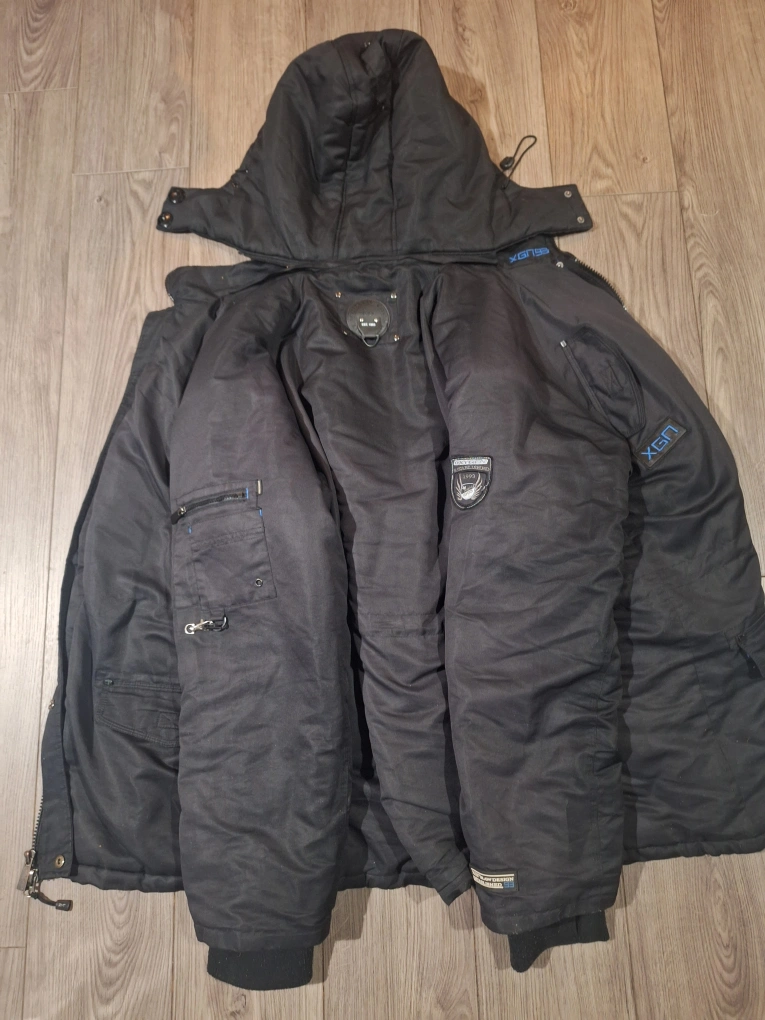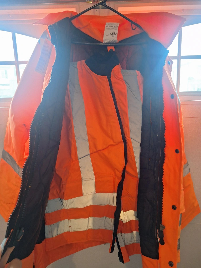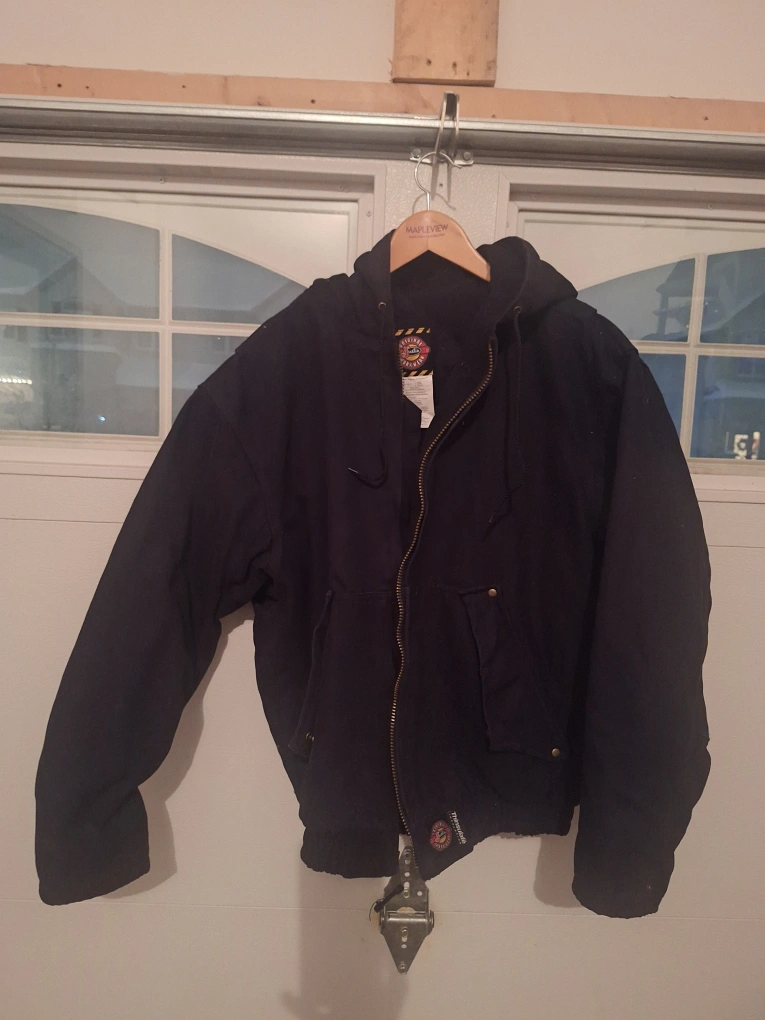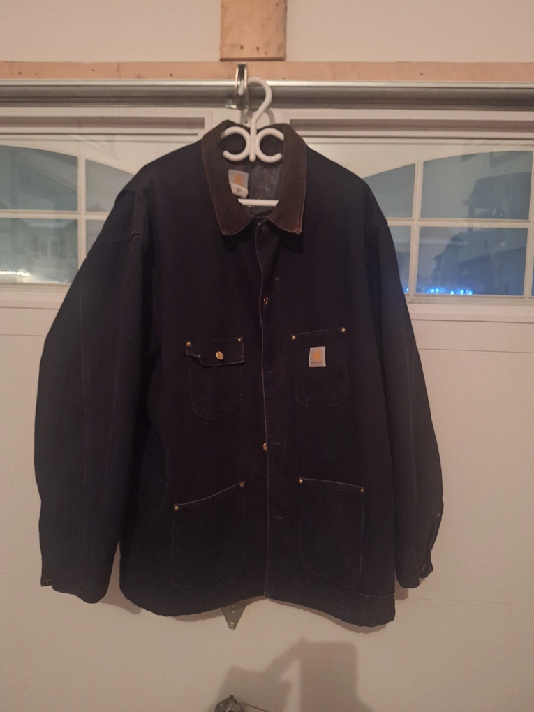 Bundle includes black overalls, black insulated coveralls, tan Carhartt overalls, and a yellow insulated jacket. All are in good condition. No rips or tears.