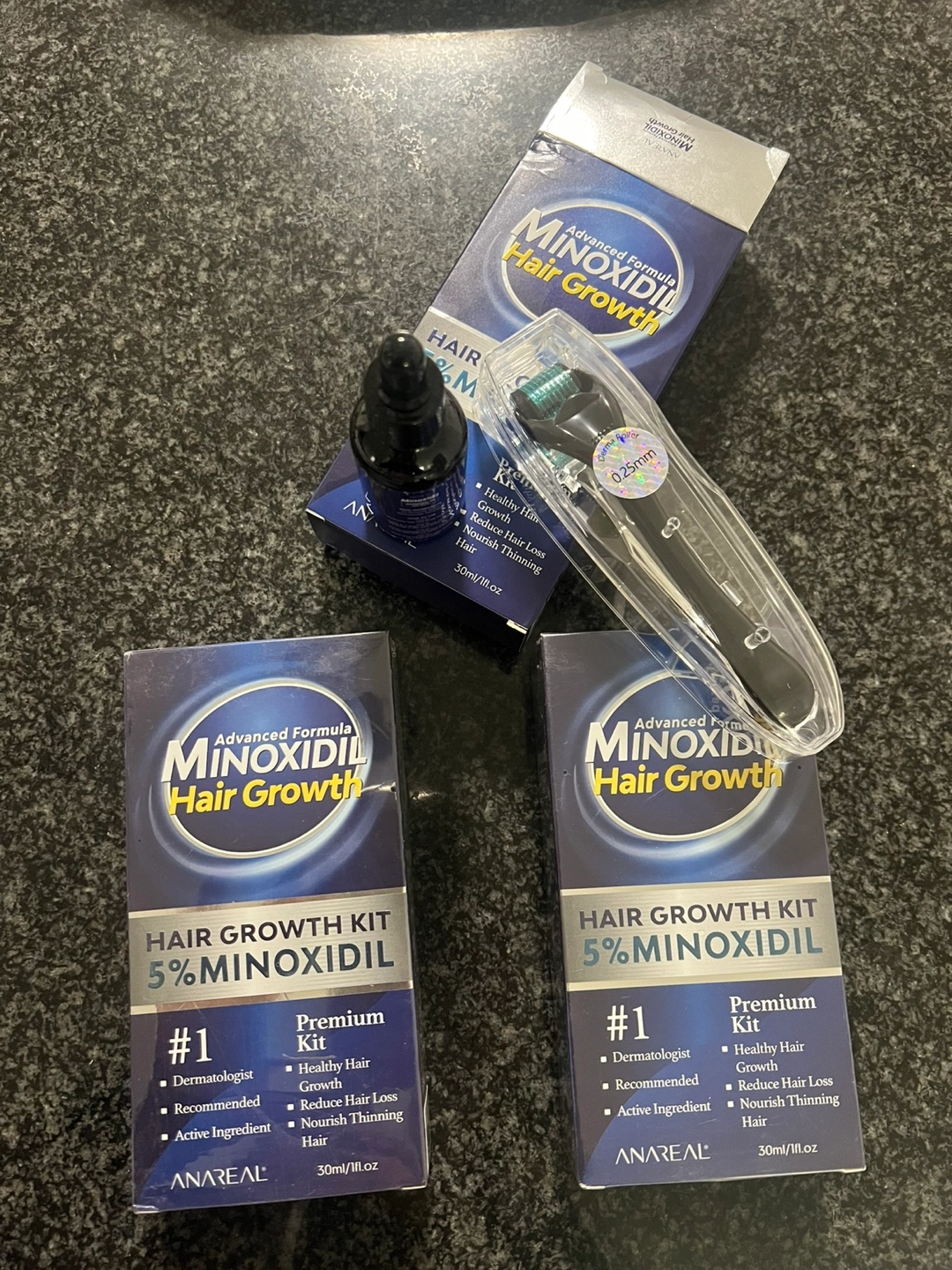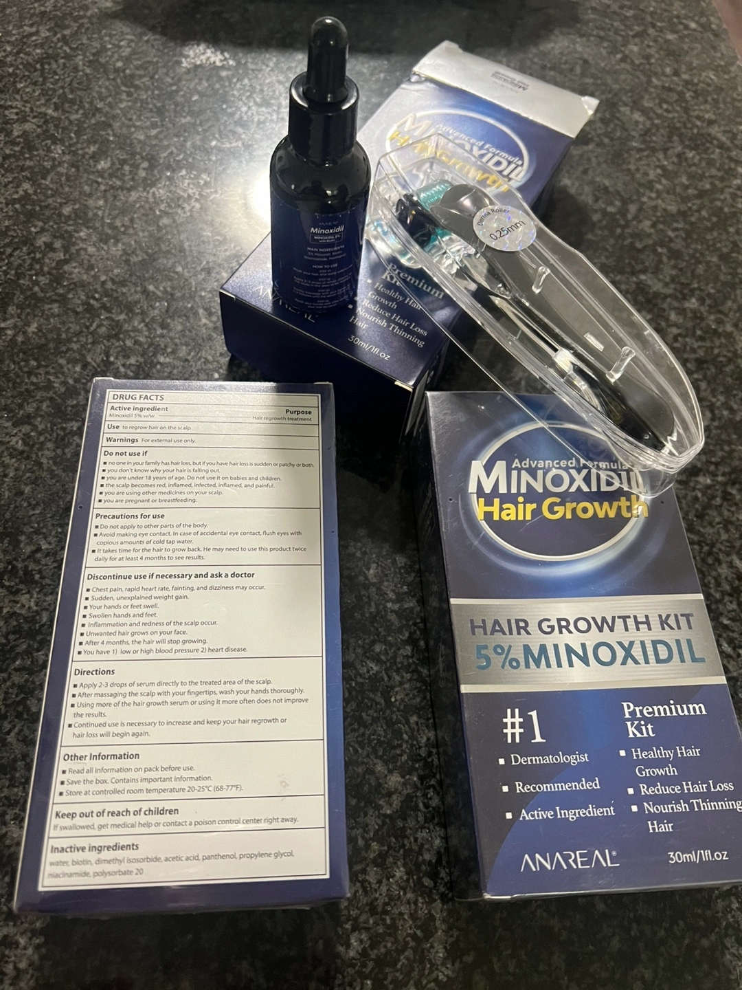 Hair growth kit, includes a bottle of minoxidil solution, a Derma-roller, Dermatologist recommended. BRAND NEW IN BOX Pick up Richmond Hill