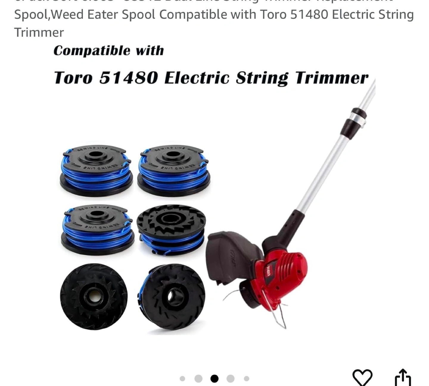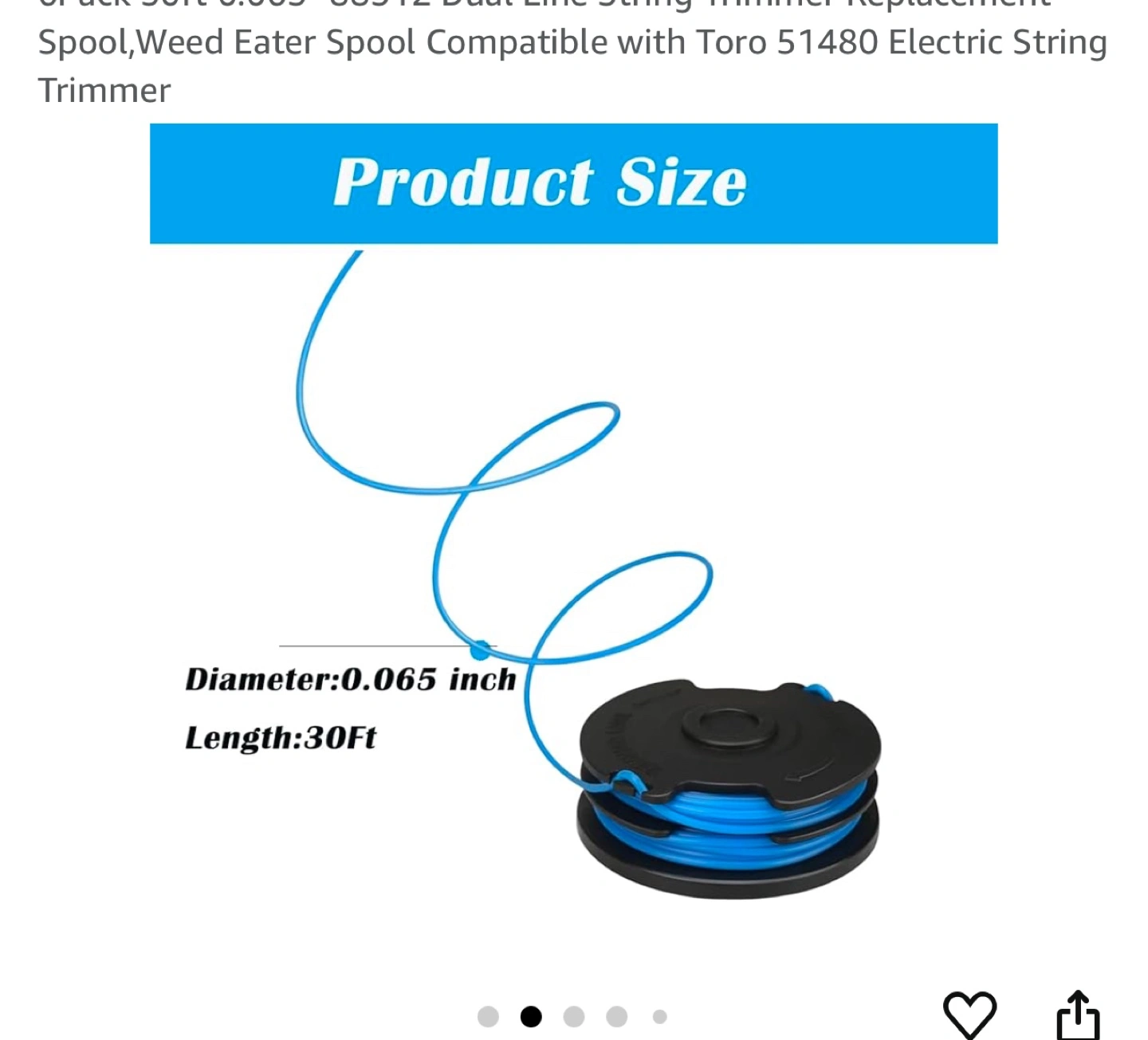 4 pack spools of trimmer line, compatible with Toro 51480 Electric String Trimmer. 30 feet of line per spool. Diameter: 0.065 inch. BRAND NEW IN BOX Pick up Richmond Hill