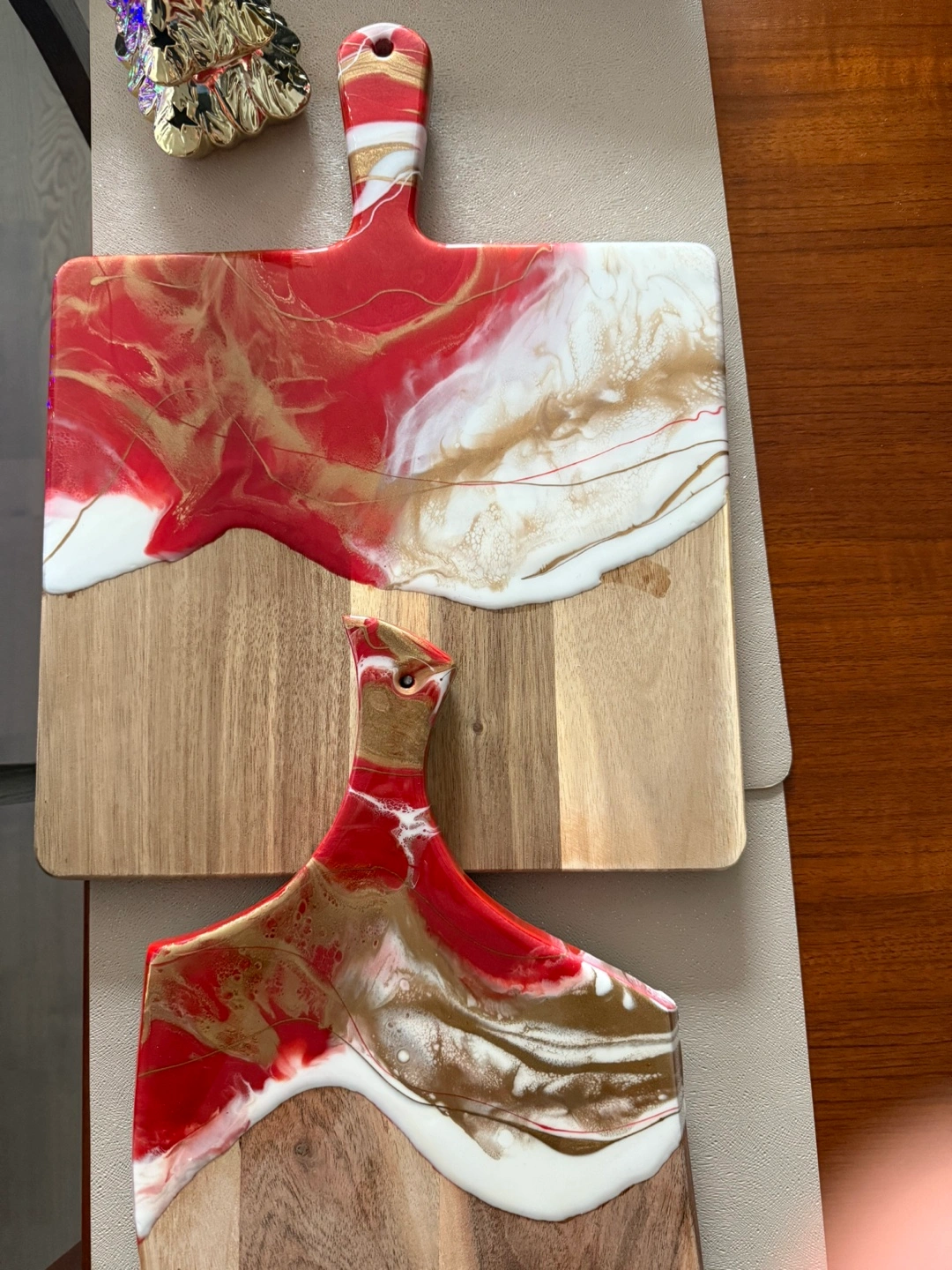Red and Gold Epoxy Resin charcuterie boards