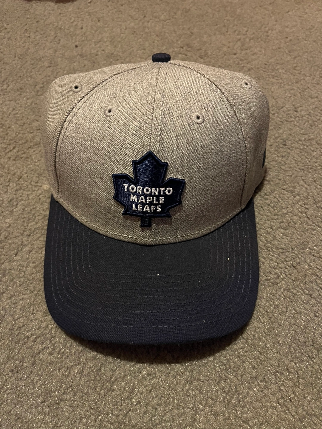 Grey and navy blue snapback hat. Toronto Maple Leafs logo on the front.