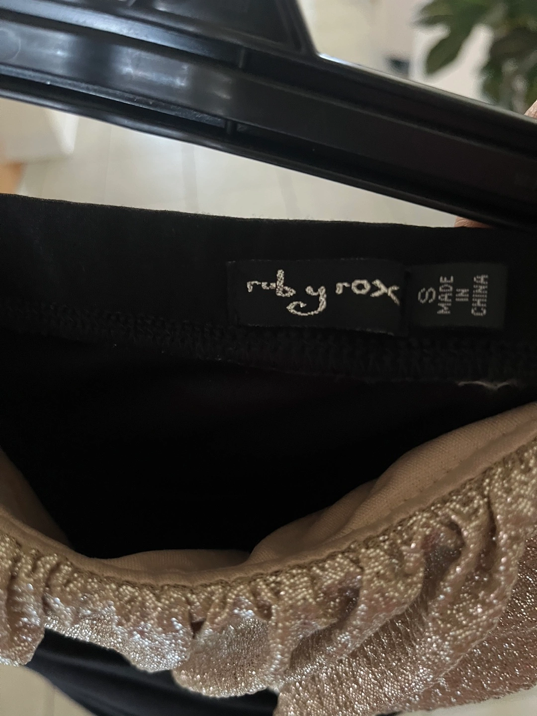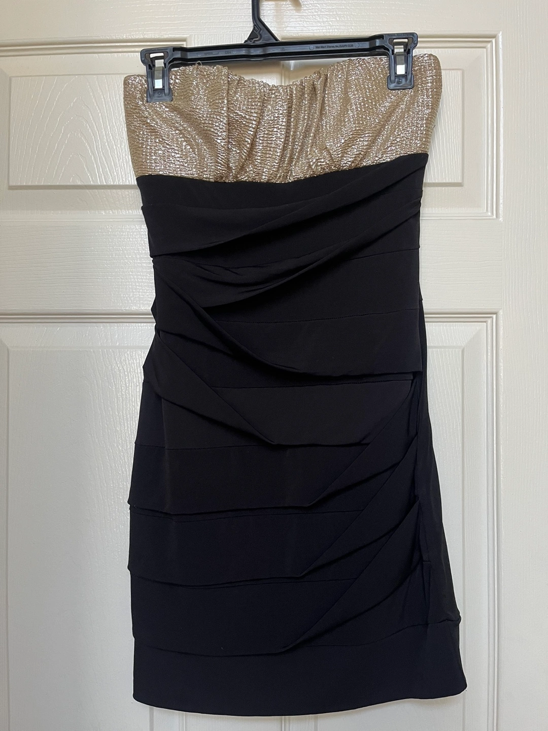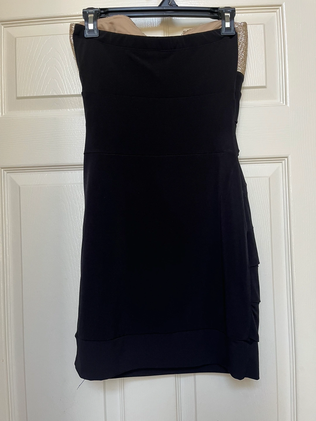 Strapless dress with gold sequin top and black bodycon skirt. Size small.