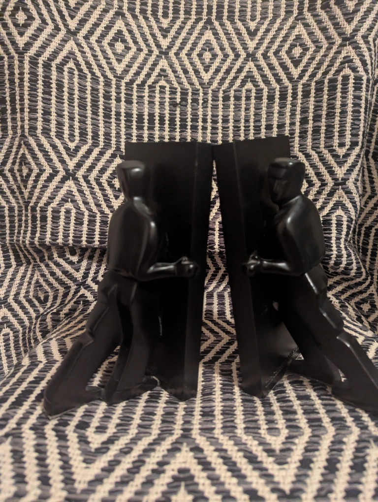 Kikkerland Bookends designed by Chris Collicott. These are older but in excellent condition. Solid black colour and a good weight.