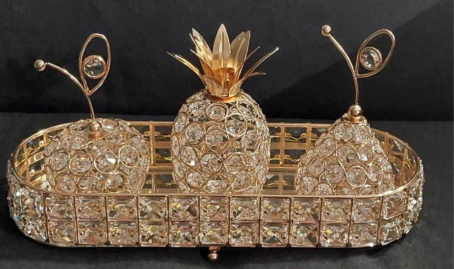 BNIB 4pcs Set of European-Inspired Crystal Fruit Centerpieces - Apple, Pear & Pineapple. Heavy crystal tray with mirror base. Designs for Home and Room Decor, Perfect Christmas Gift Smoke free and pet free home Kindly note all sales are final and no return or refund Please check my other listings aswell😊