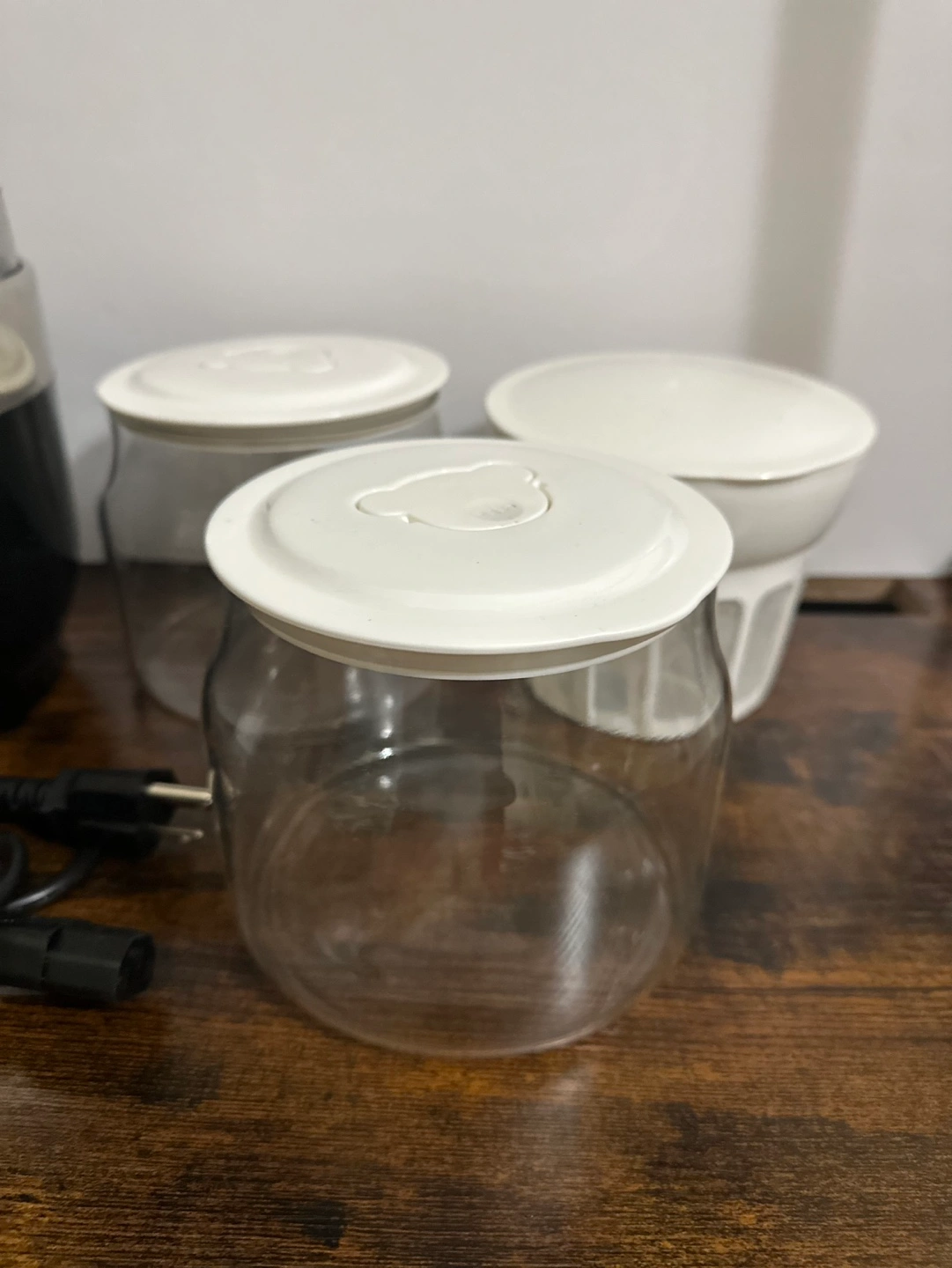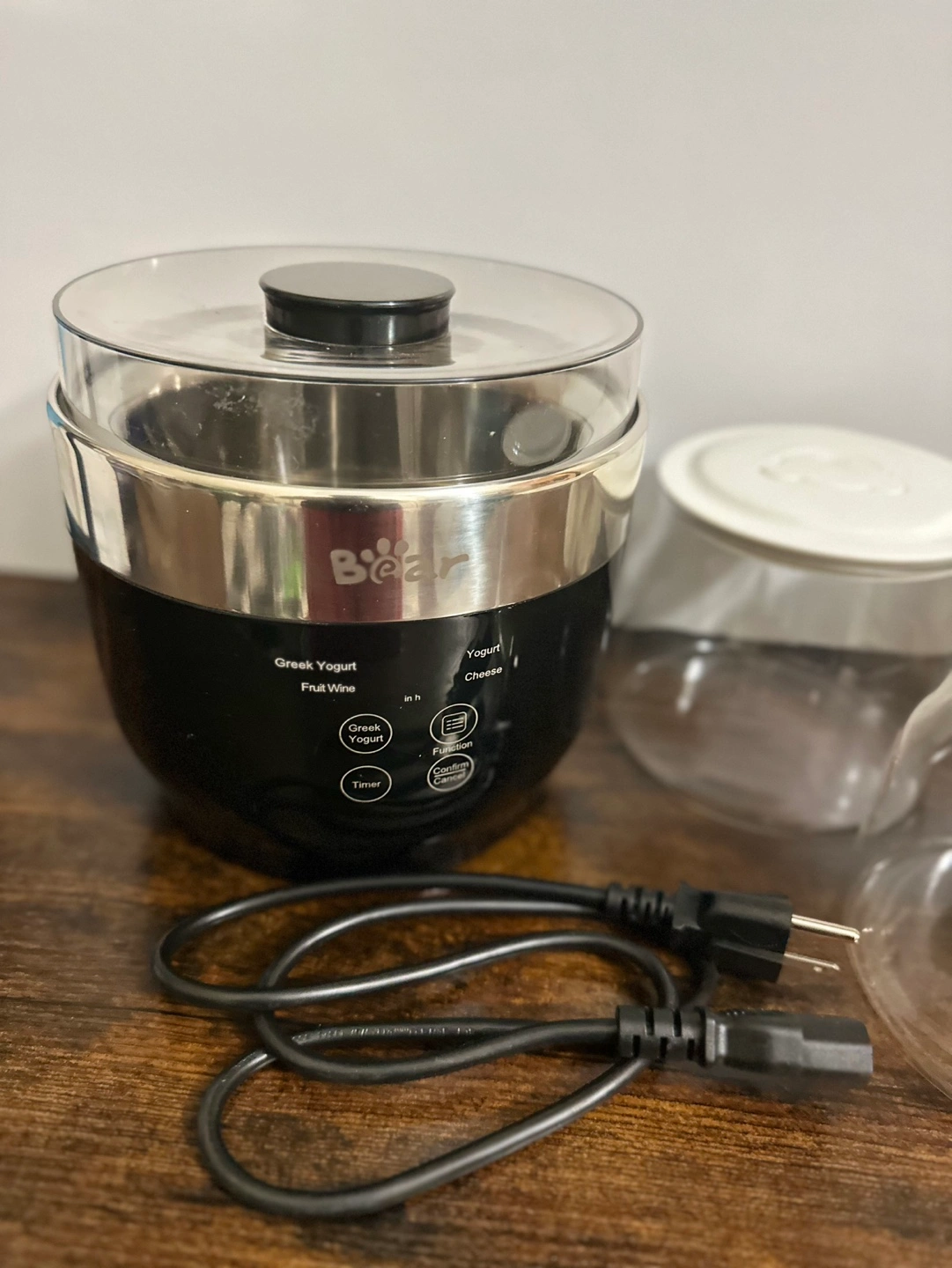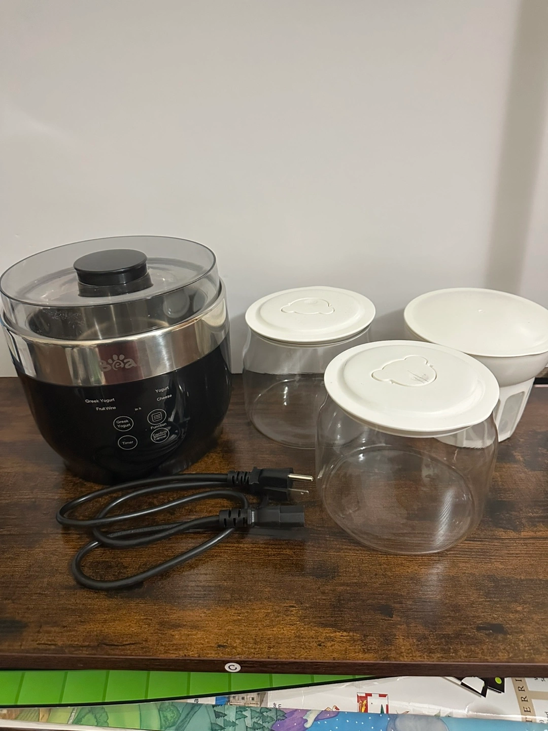 Yogurt Maker Makes yogurt, Greek yogurt, cheese, and wine. Stainless steel pot for even heat, creamy yogurt. Large capacity glass jars. Intelligent heating, timer, and LED display. Brand new, never used. Includes machine, 2 glass jars, and strainer. It doesn’t come in its original box and instruction manual. I can share a video showing its instructions. Pick up is in Ajax, close to harwood bayly intersection. Delivery may be available based on location.