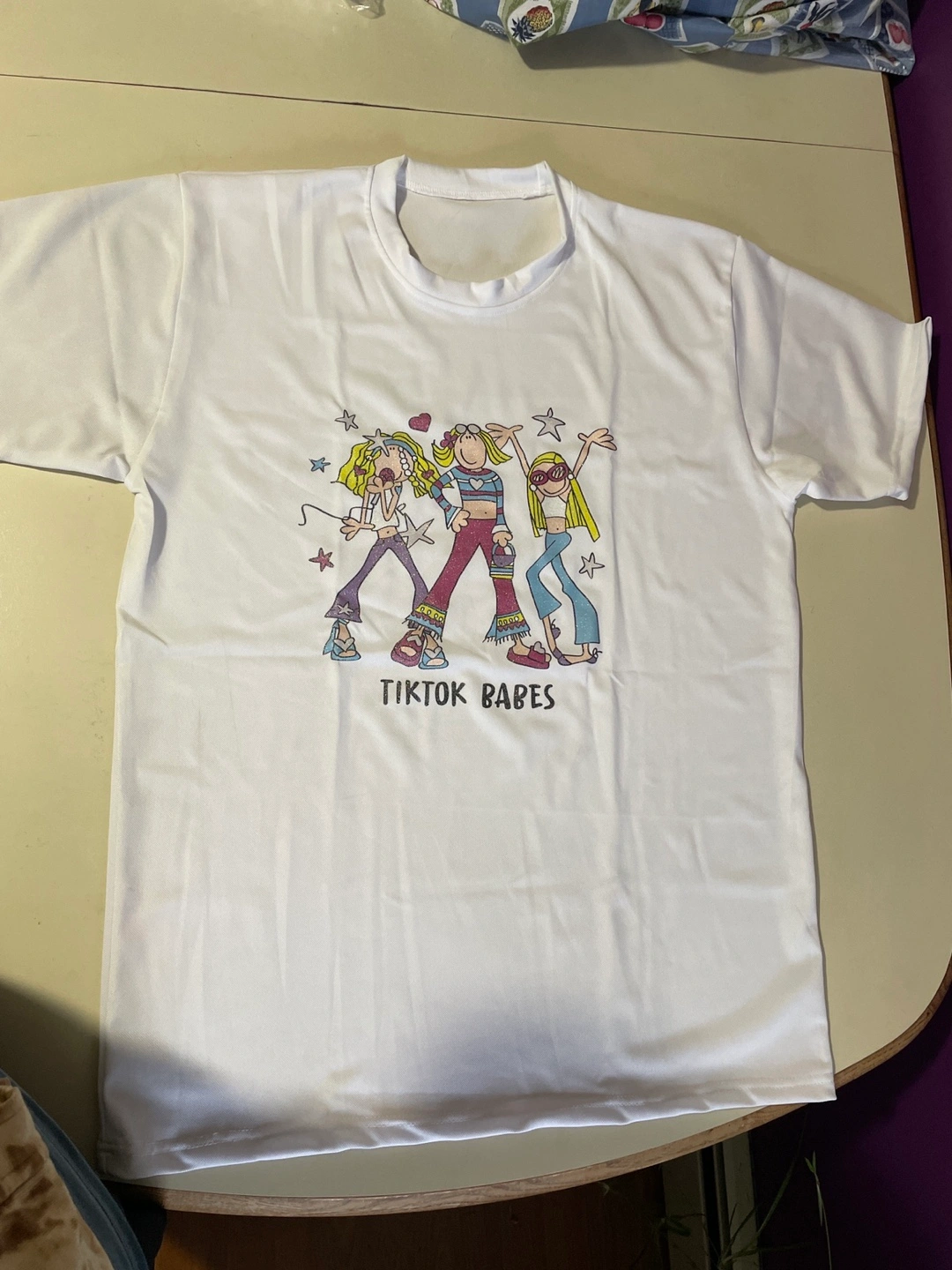 New White T-shirt with Glossy Graphics. Short sleeves, crew neck, dry-fit fabric. Size Large - Check the exact measurements on the pictures. $10 each or $15 for both. Open for trade (send me your offer). Great gift