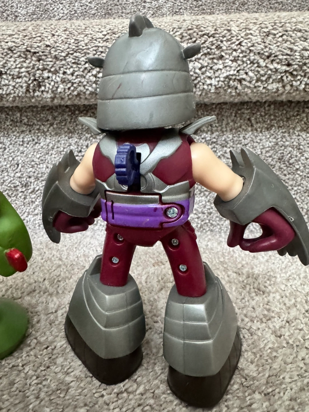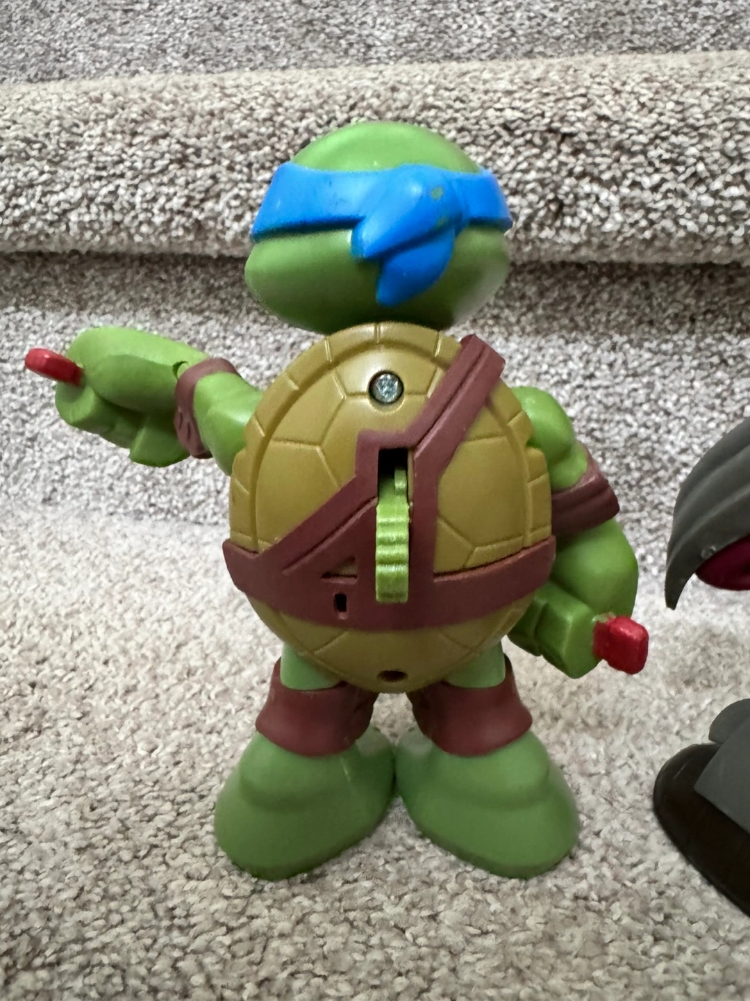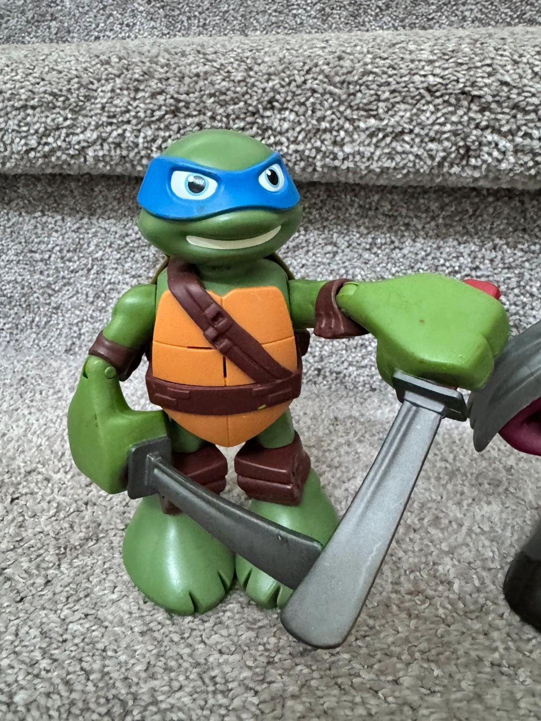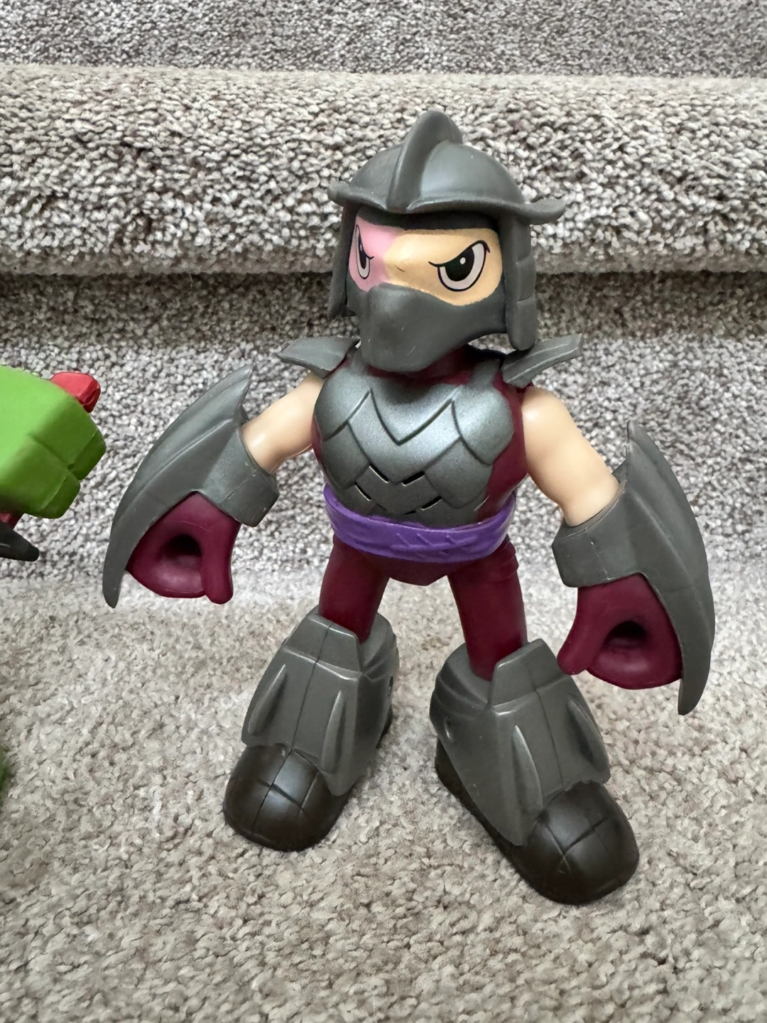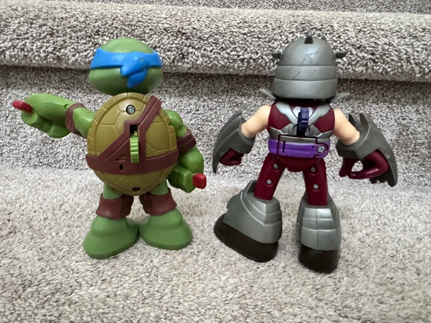 Teenage Mutant Ninja Turtles Leonardo and Shredder action figures. The arms can be moved.