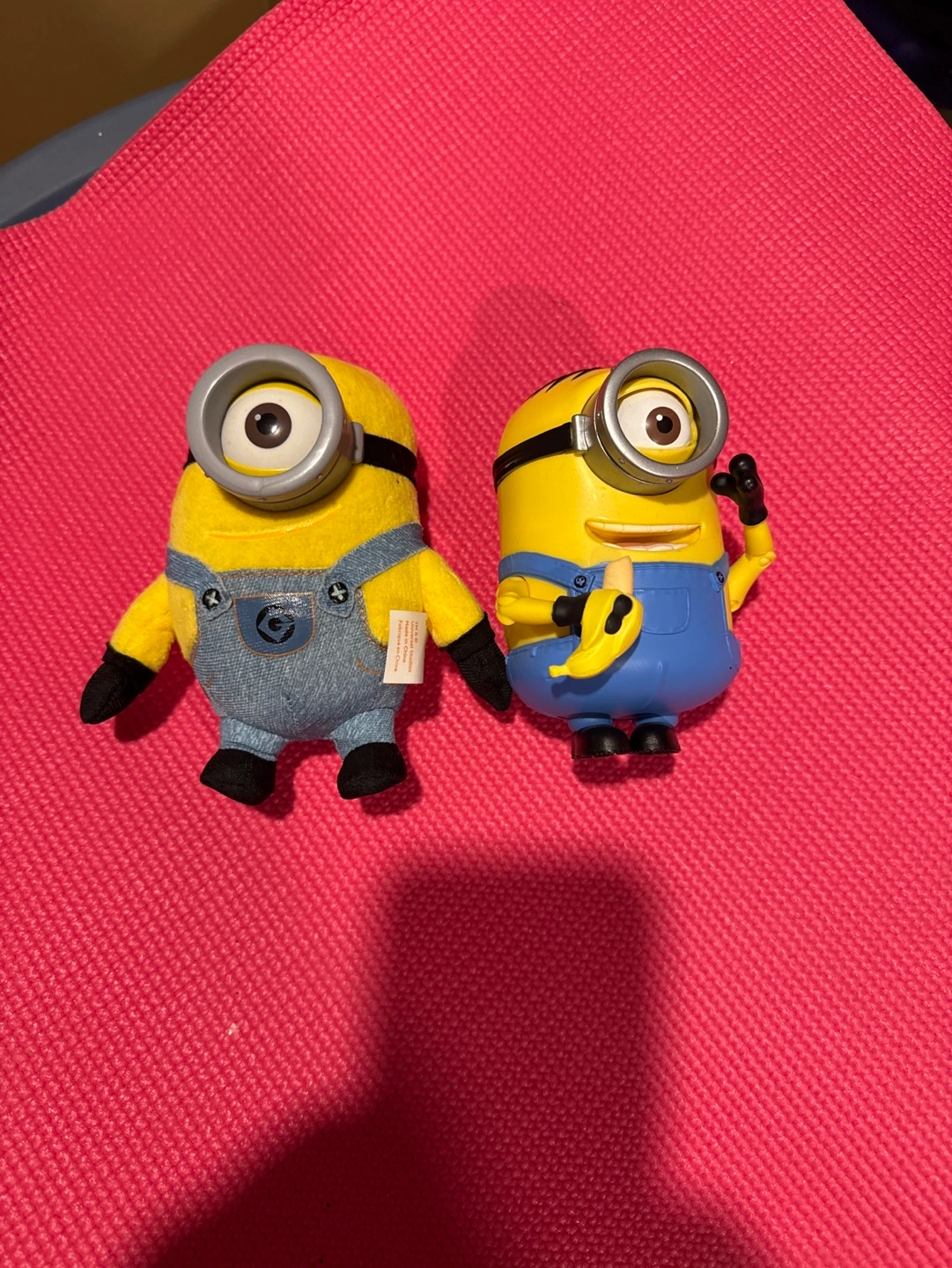 Two Minions toys. One is a soft plush toy. The other is a hard plastic toy. Approximately 13 cms tall. Price is for both.