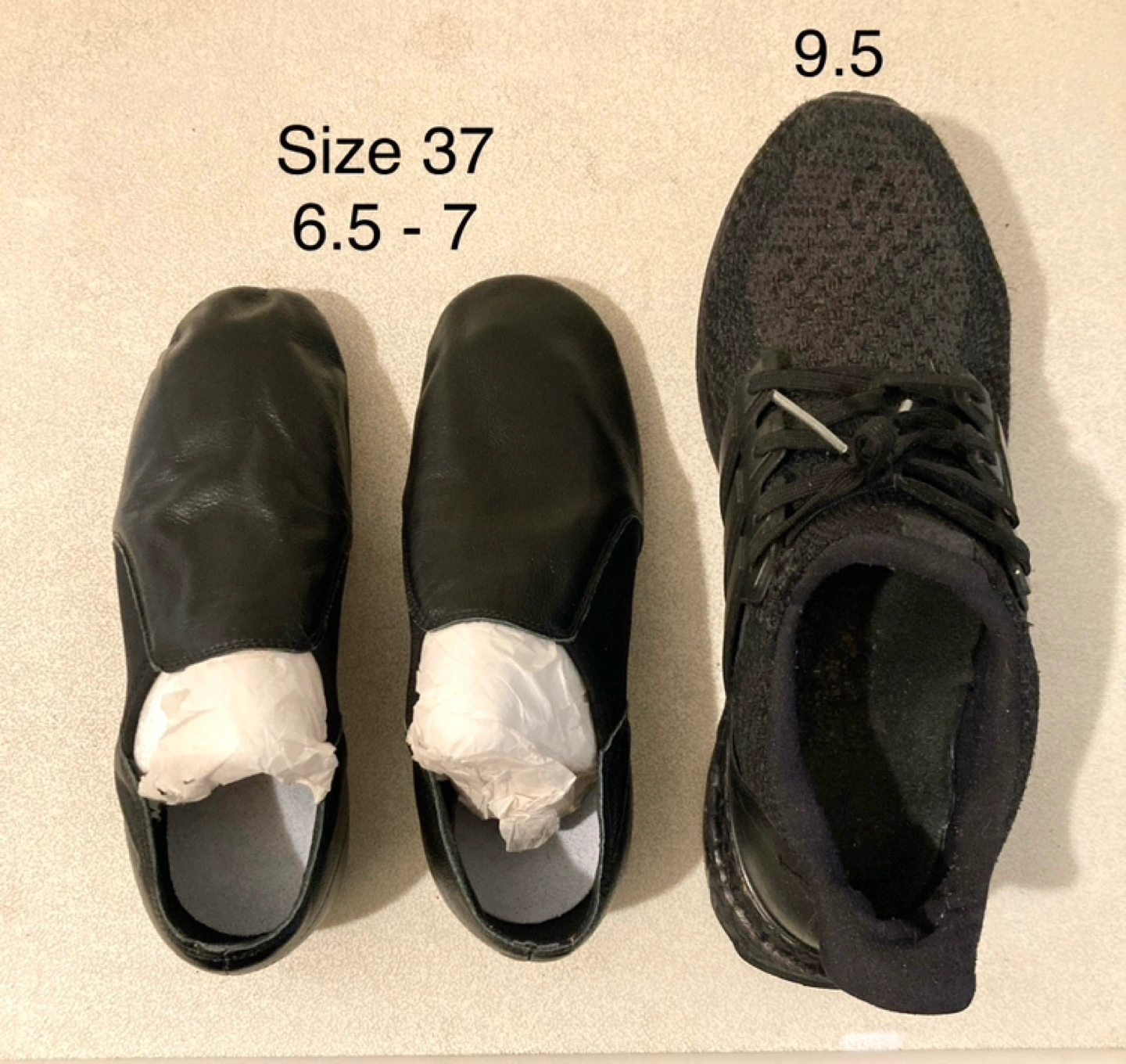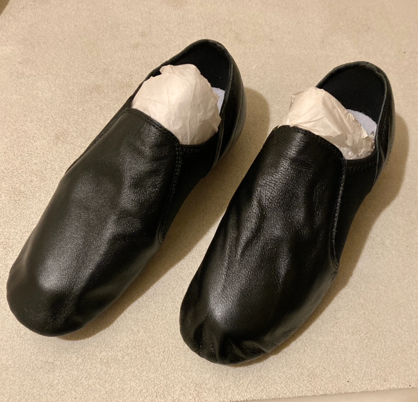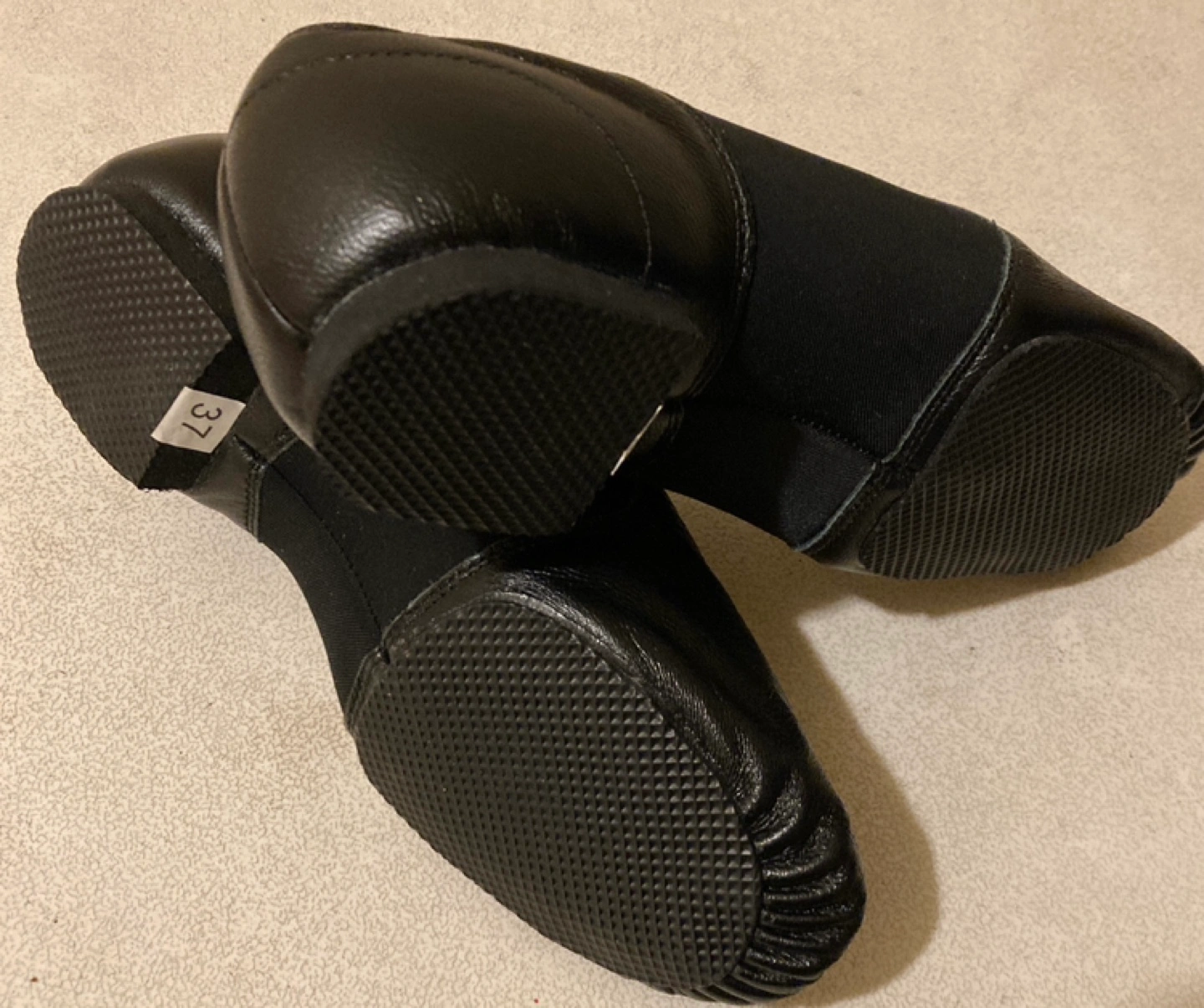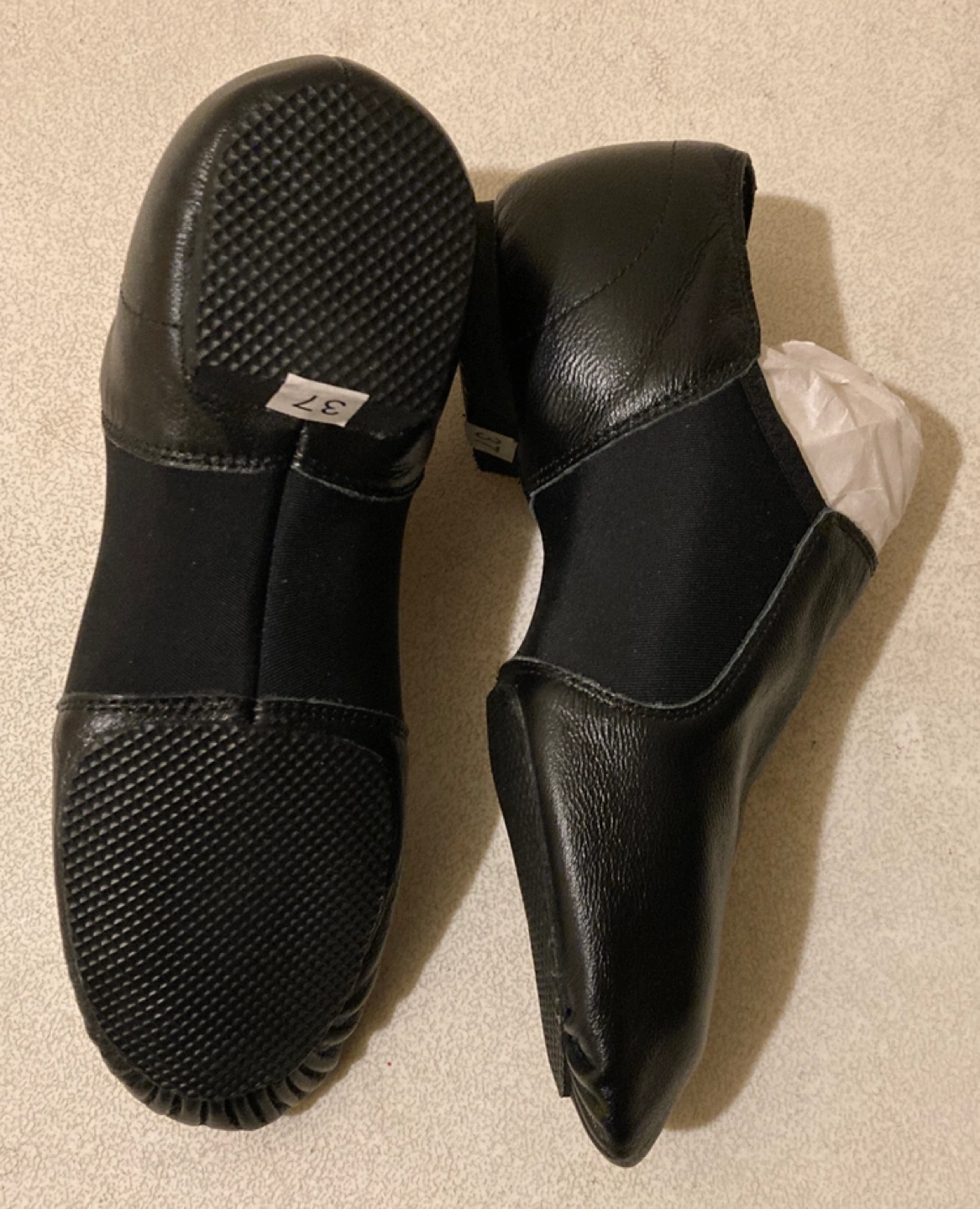 Black soft pleather jazz/dance practice shoes. Slip-on style. Price comparison from $29.99 and up Size 37 / 6 Appears to be a bit smaller than 6 Pick up Cash only If it’s posted it’s available!