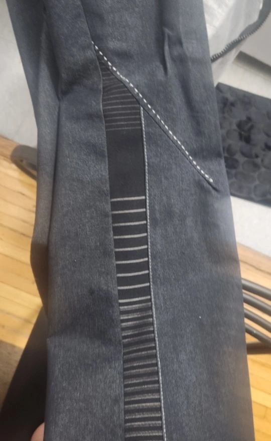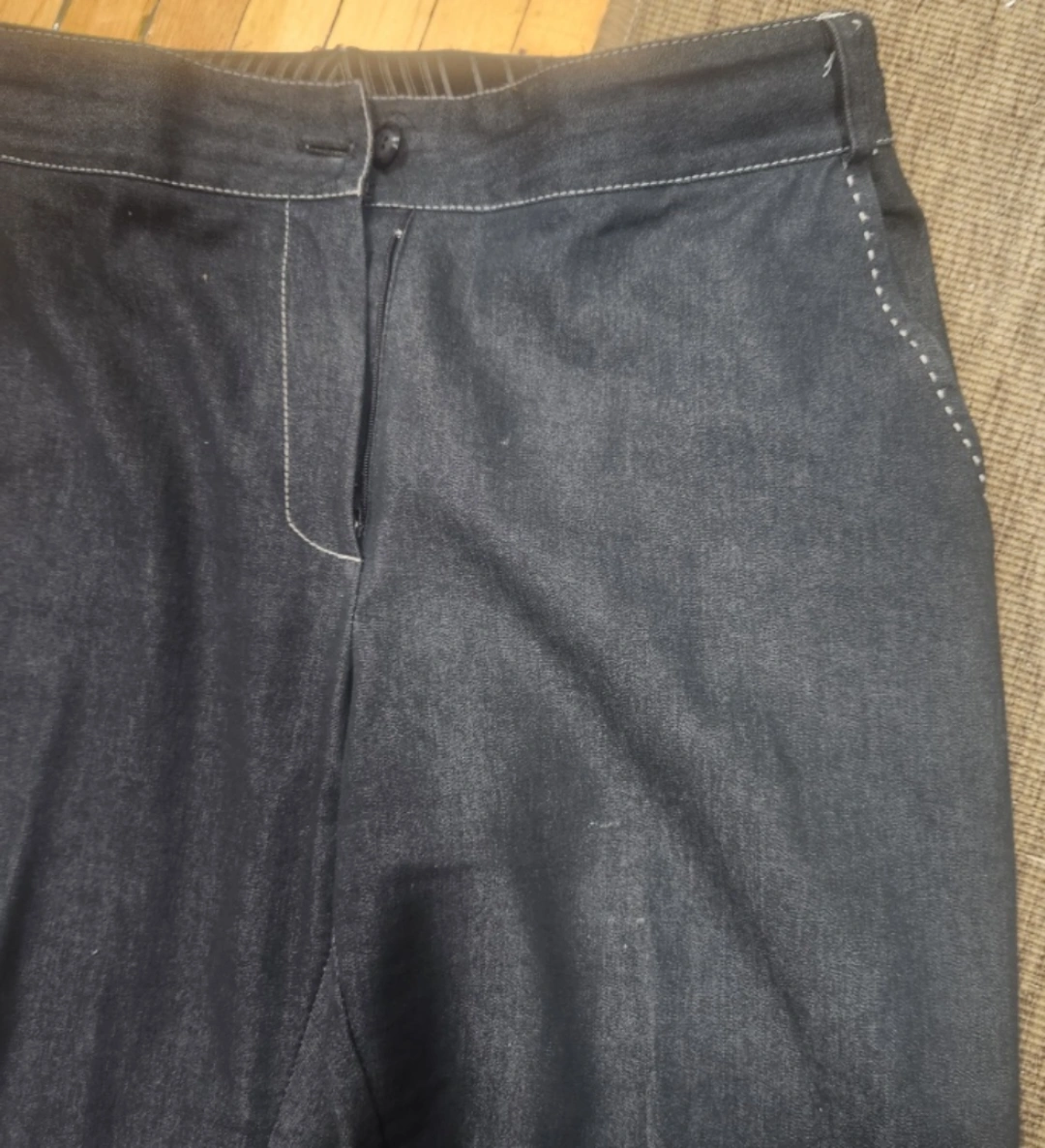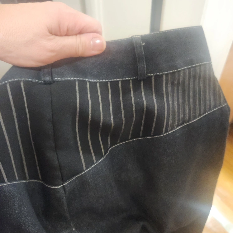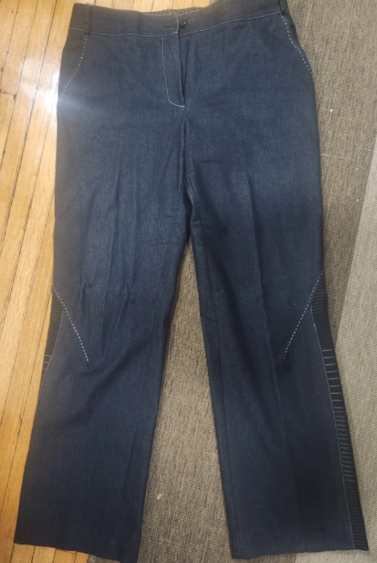 Black blazer and pants suit. Features a zip up front, long sleeves, and a high collar. The pants have a straight leg fit. Made in Canada. 60% cotton 37% polyester 3% spandex Pick up only