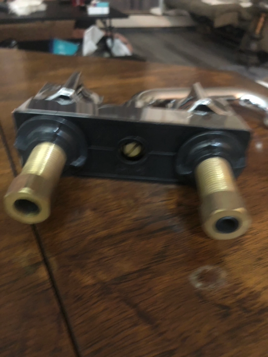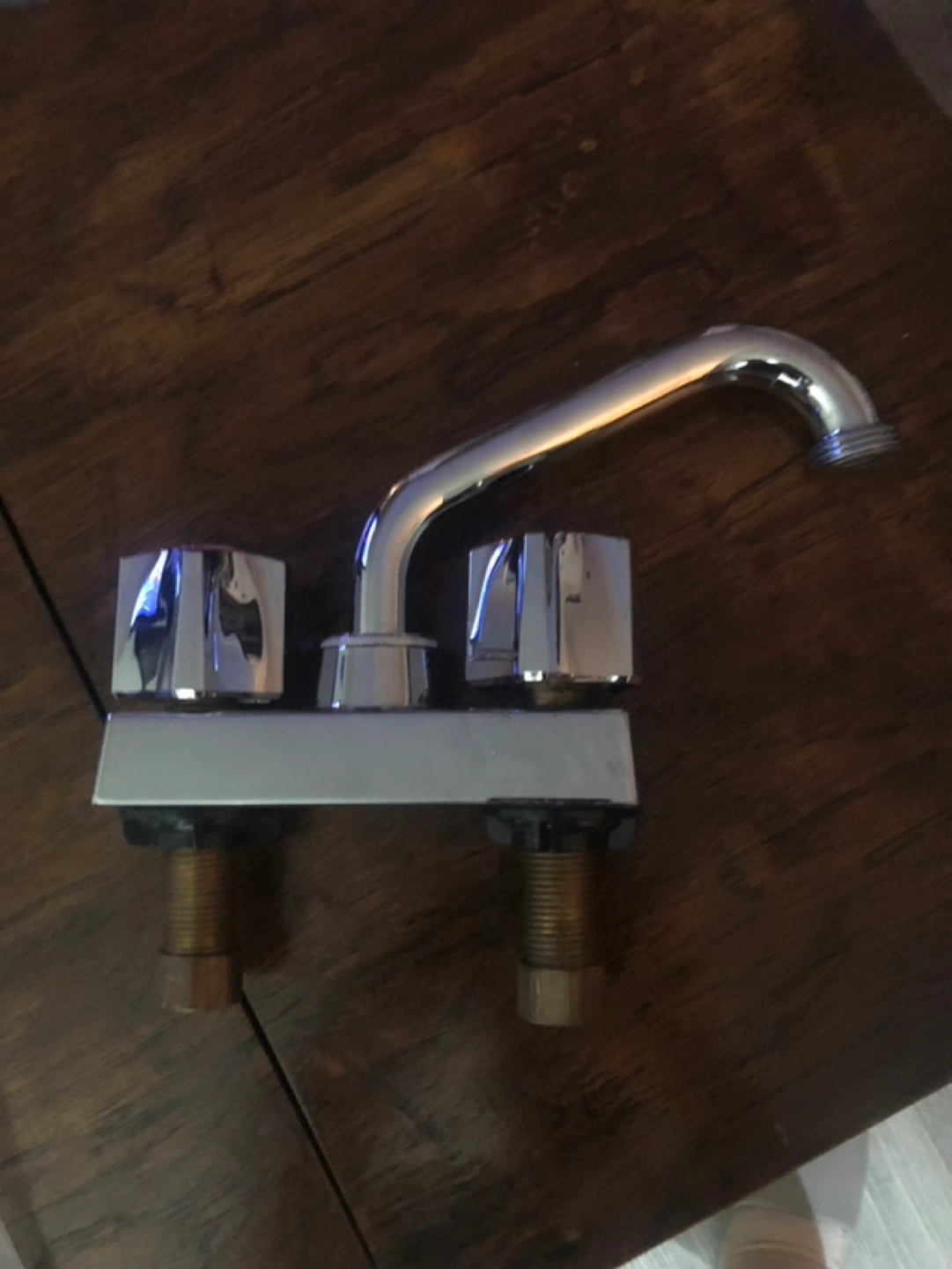 Chrome bathroom sink faucet, two-handle. Includes mounting hardware. Unused, but has slight scratches.