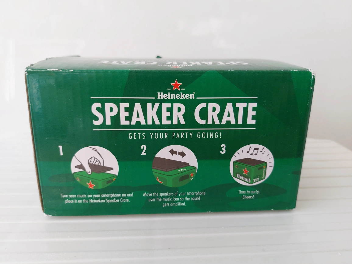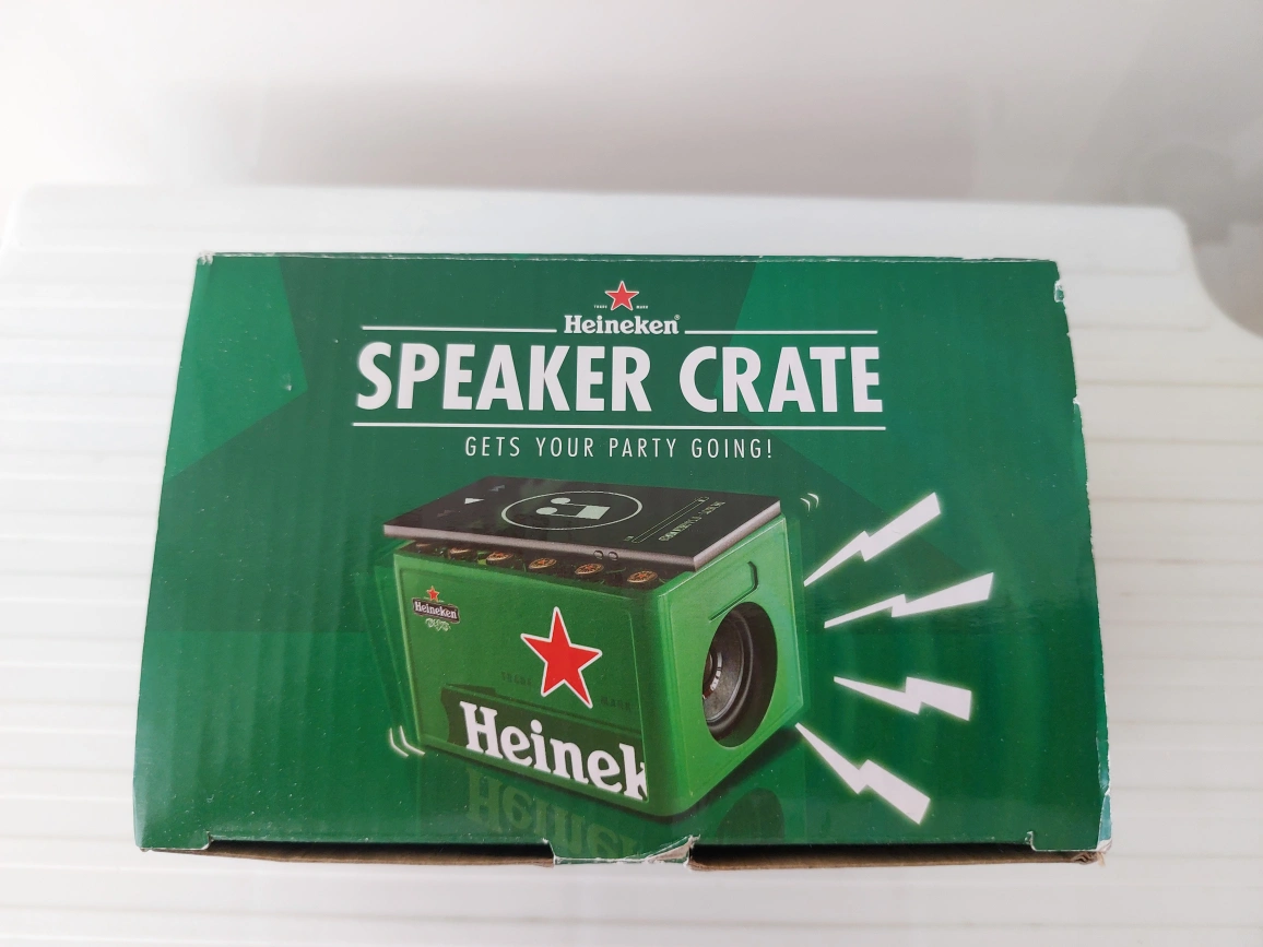 - BRAND NEW IN BOX with instruction manual - Portable bluetooth speaker, shaped like a Heineken crate - Includes USB cable - Pickup at Yonge & 16