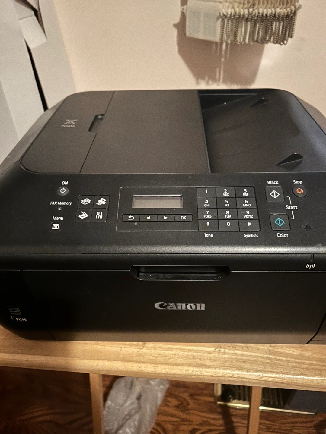 All-in-one printer, scanner, and copier. Includes wireless functionality. Basically new used a couple of times sorry no box. Getting started instructions included.