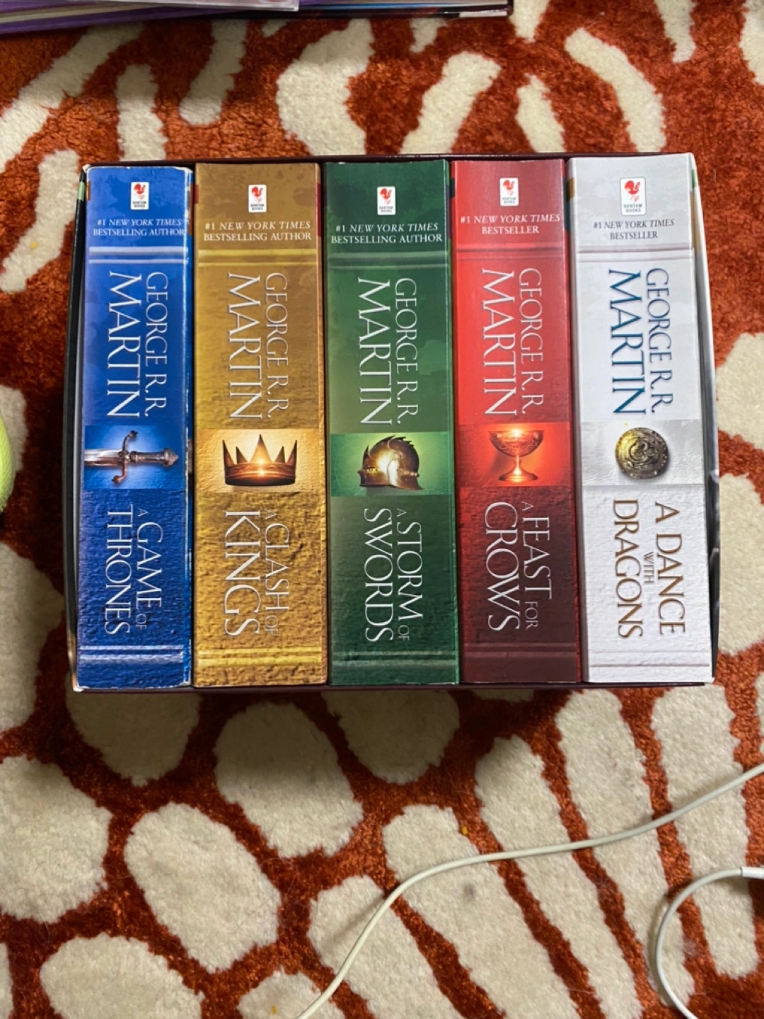 Five books in a box set. Includes A Game of Thrones, A Clash of Kings, A Storm of Swords, A Feast for Crows, and A Dance with Dragons. In excellent condition. PICK UP PICKERING WHITES RD & STROUDS LANE